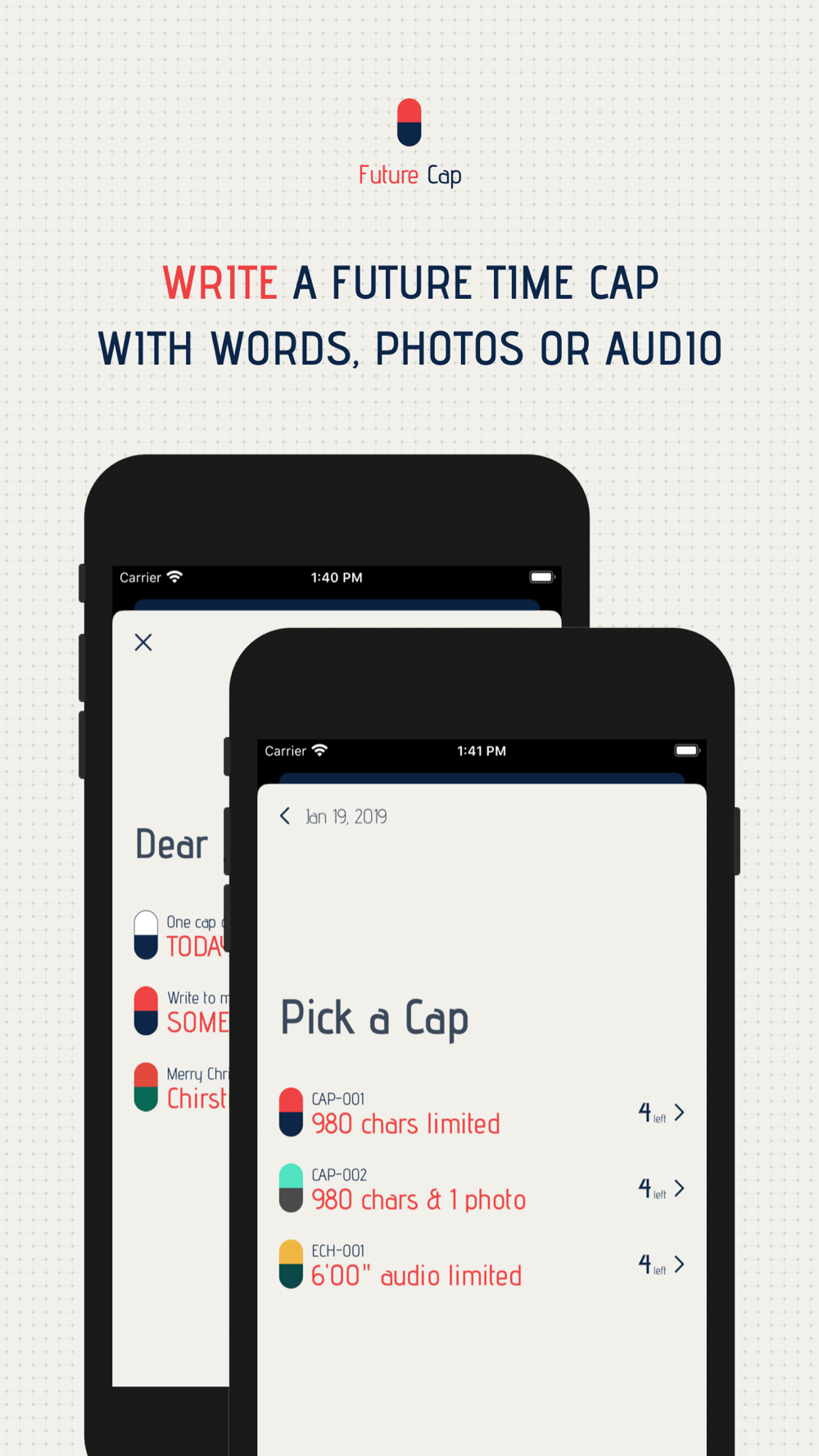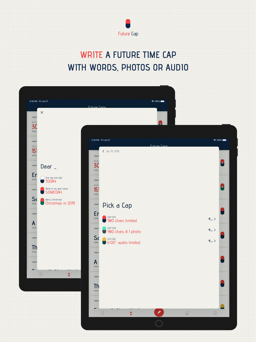 * Future Caps: Write to your next birthday, to next Christmas, to the time after the exam/enrollment/entry, to the dear future you.