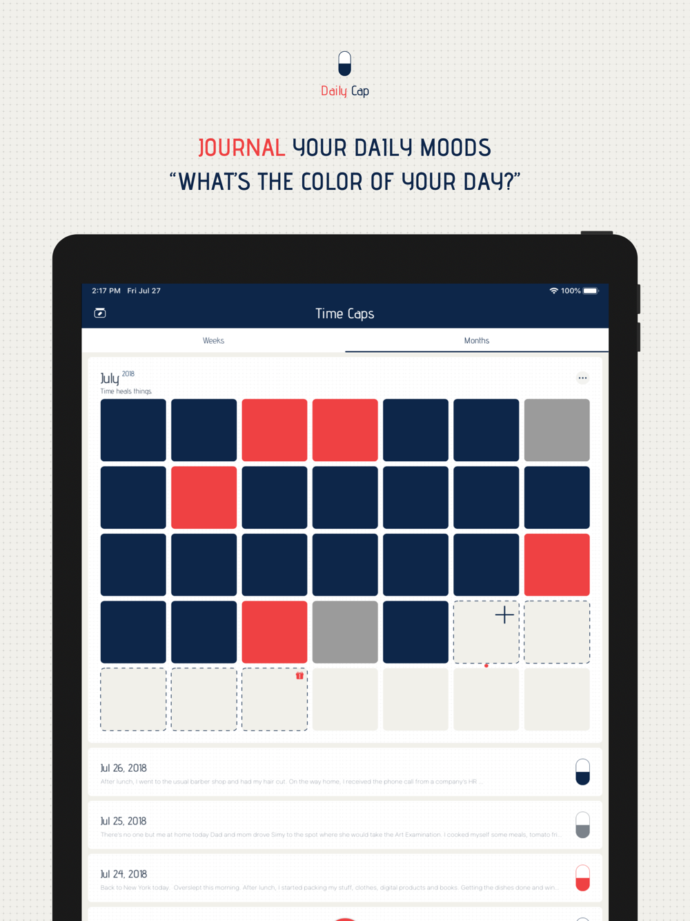 * Day Grid: Display journals in grids. Fill your lovely life with colorful daily caps.