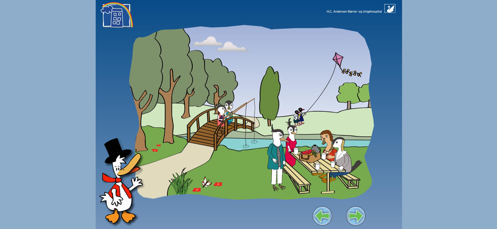 Børn i denne aldersgruppe lærer og erkender ved leg og konkret information. Indlagte børn kan hurtigt blive “fyldt op” med en masse information. Derfor er HC And bygget op af korte sekvenser i børnehøjde, så “nye” kan starte her.