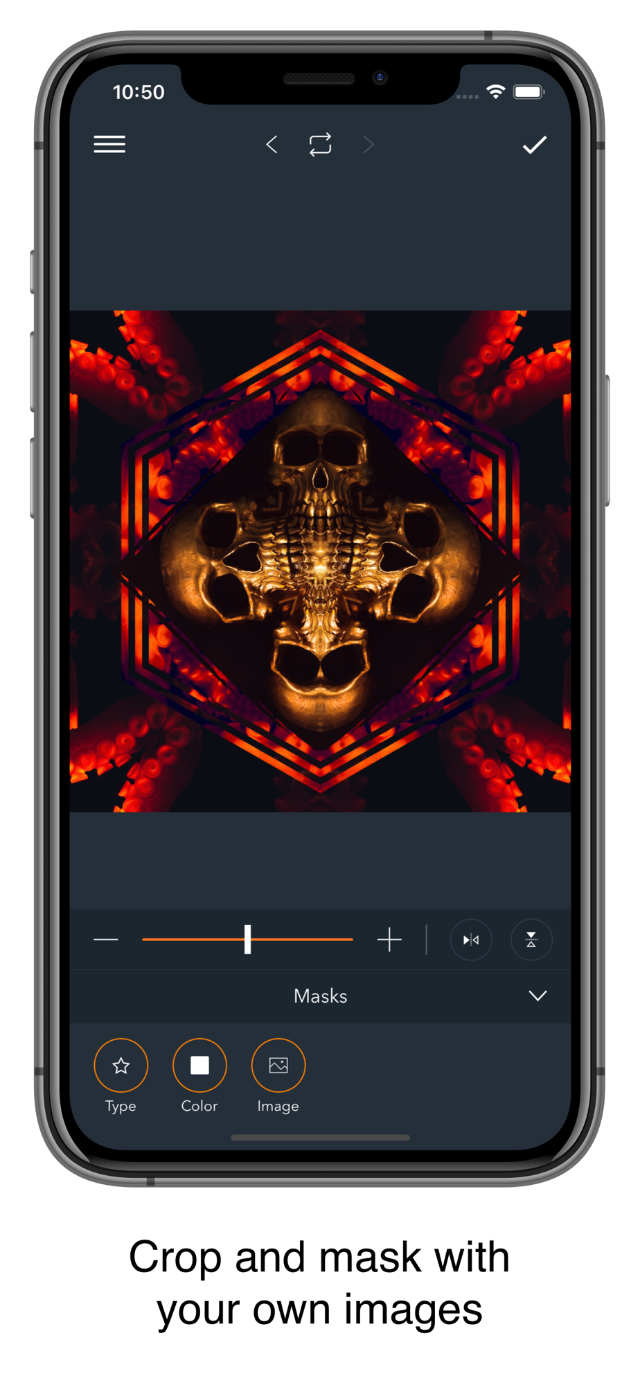 • Manipulate the shape of your Mirrorly pictures with masking tools!