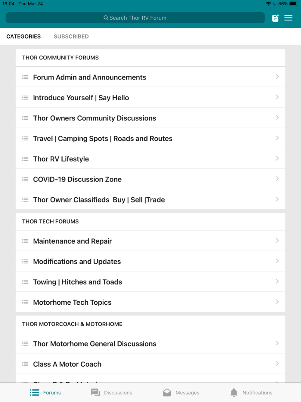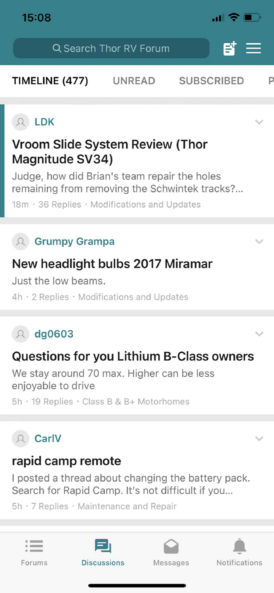 Thor RV Forum is the leading online community for Thor RV owners. Our iPhone app allows you to access our forums on your iPhone so you can post questions from the road or campground, upload photos to let other RV enthusiasts know what you are up to. Stay connected with other travel trailer and motorhome owners and chat with industry experts. Gets tips on your Thor RV as well as information about camping and campgrounds. This app can also be used to stay up to date on new listings in our classifieds. Find current information on used motor homes for sale and stay alerted to new listings in your area.