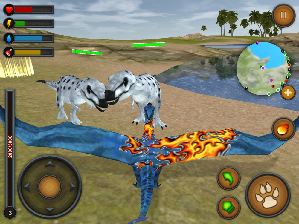 Your requests have been answered - Pterodactyl Multiplayer is here! ** Includes Live Chat ** Also include Offline Map. You are not required to play online. Fly with this giant beast across the beautiful Jurassic landscape. Breathe fire at your dinosaur opponents. Enter this massive 3D world and control your own flying dino - the great Pterodactyl. Customize your dinosaur to make it look anyway you wish. Glide across this huge landscape filled with enemies and magic. Chase down your enemies and gain skill and adventure points as you improve. As a bonus, we've included "instant magic" in the online version. Challenge real players, in real-time. Become the Ultimate Pterodactly in this awesome fantasy simulator.