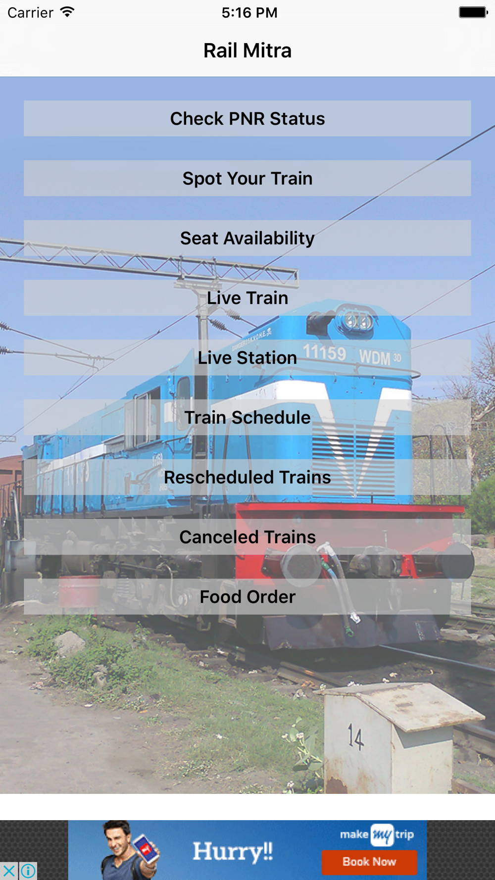 Train Schedule, Train ReSchedule, Cancelled Trains, Booking Food.