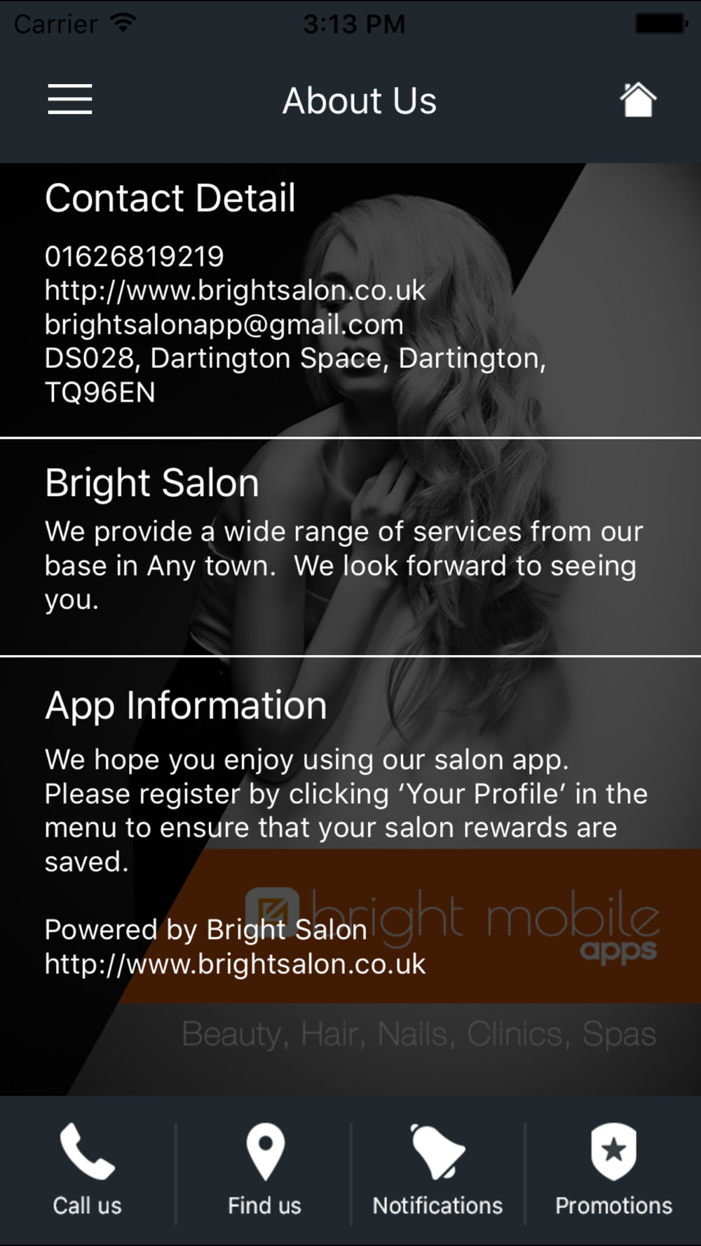 Or download there dedicated smartphone app provided by Brightsalon.