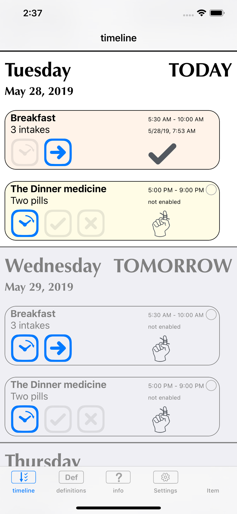 *) In the timeline, you can see your medical HISTORY for the past week (or month).