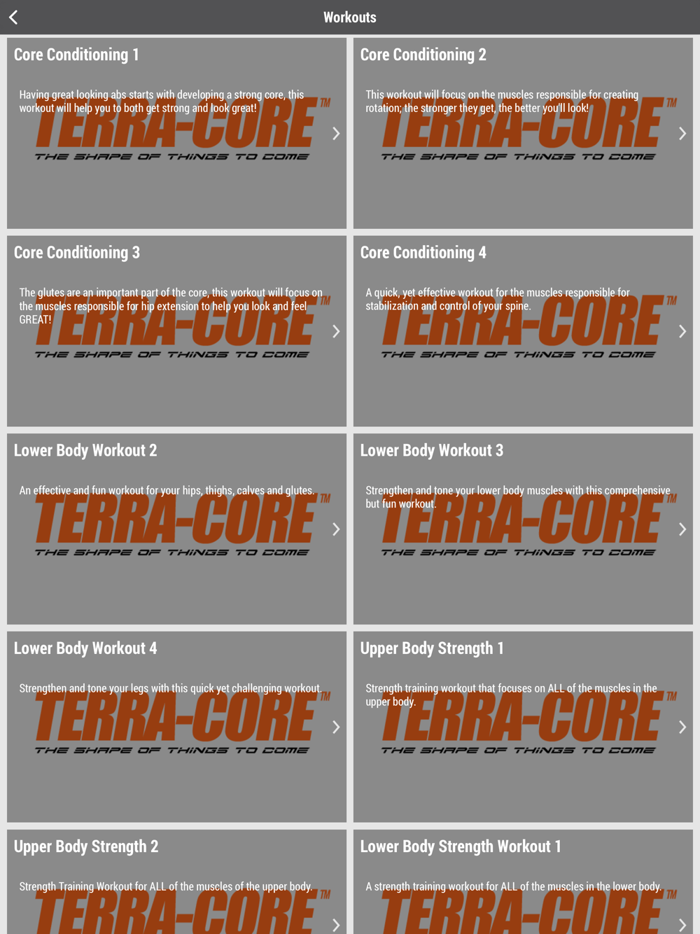 The Terra-Core mobile app delivers daily workouts to you wherever you are. Compete with your friends daily no matter where they might be.