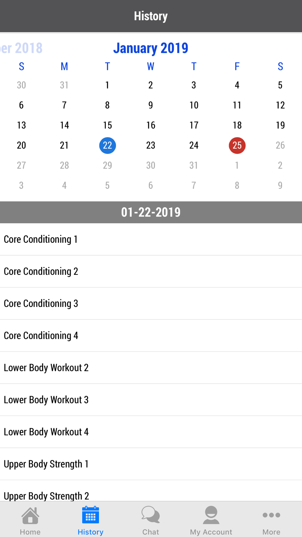 Workout History so you can constantly review what you have done in the past see how much you have improved.