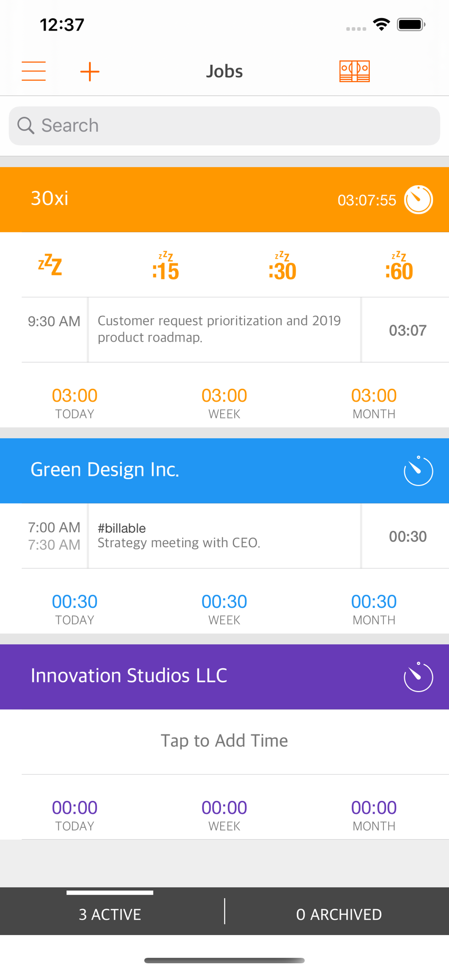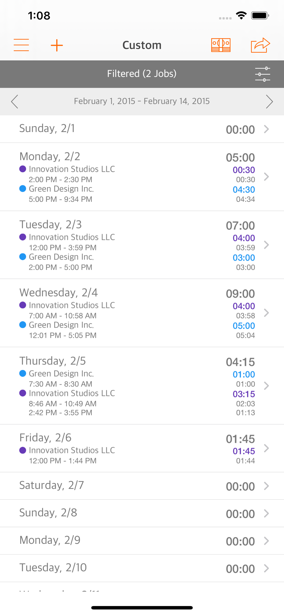 Do you work multiple projects on a given day? We provide Yearly, Monthly, Weekly, Daily and Custom summaries of your time across all jobs. With advanced filter capability, view your Dashboard your way. Now with the Job dashboard you have an efficient way to swipe through all your jobs for the current day, start / stop time, take a break, add memos and more.
