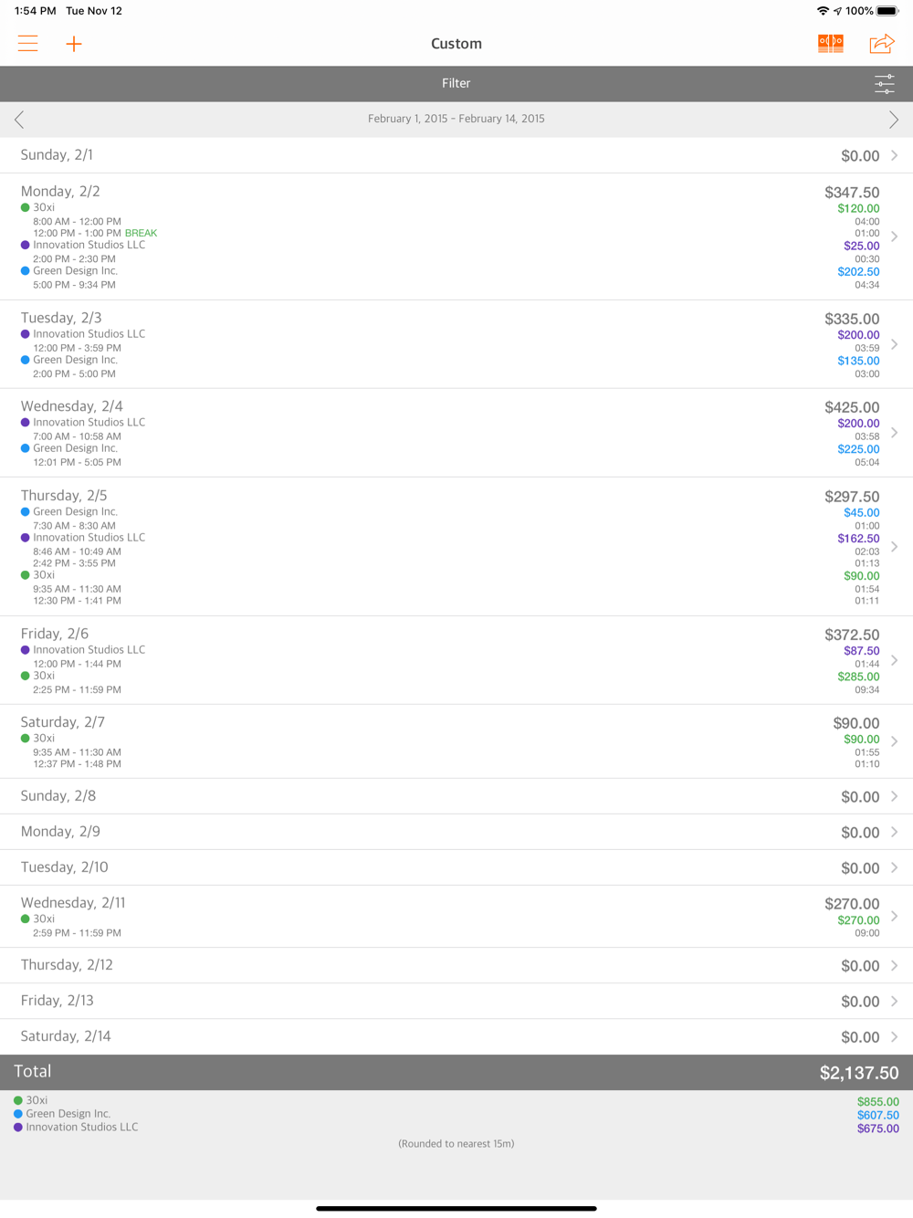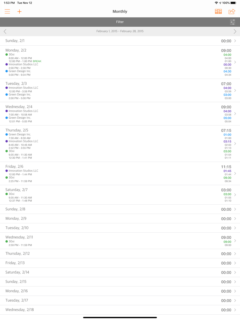 See how your time is spent from week to week even when the device is offline. Easy Hours summarizes your weekly activities so that you can spend your time doing instead of remembering. Whether you work Saturday to Friday or Monday to Sunday, you decide how you manage your week. We provide weekly and daily views of all time entries.