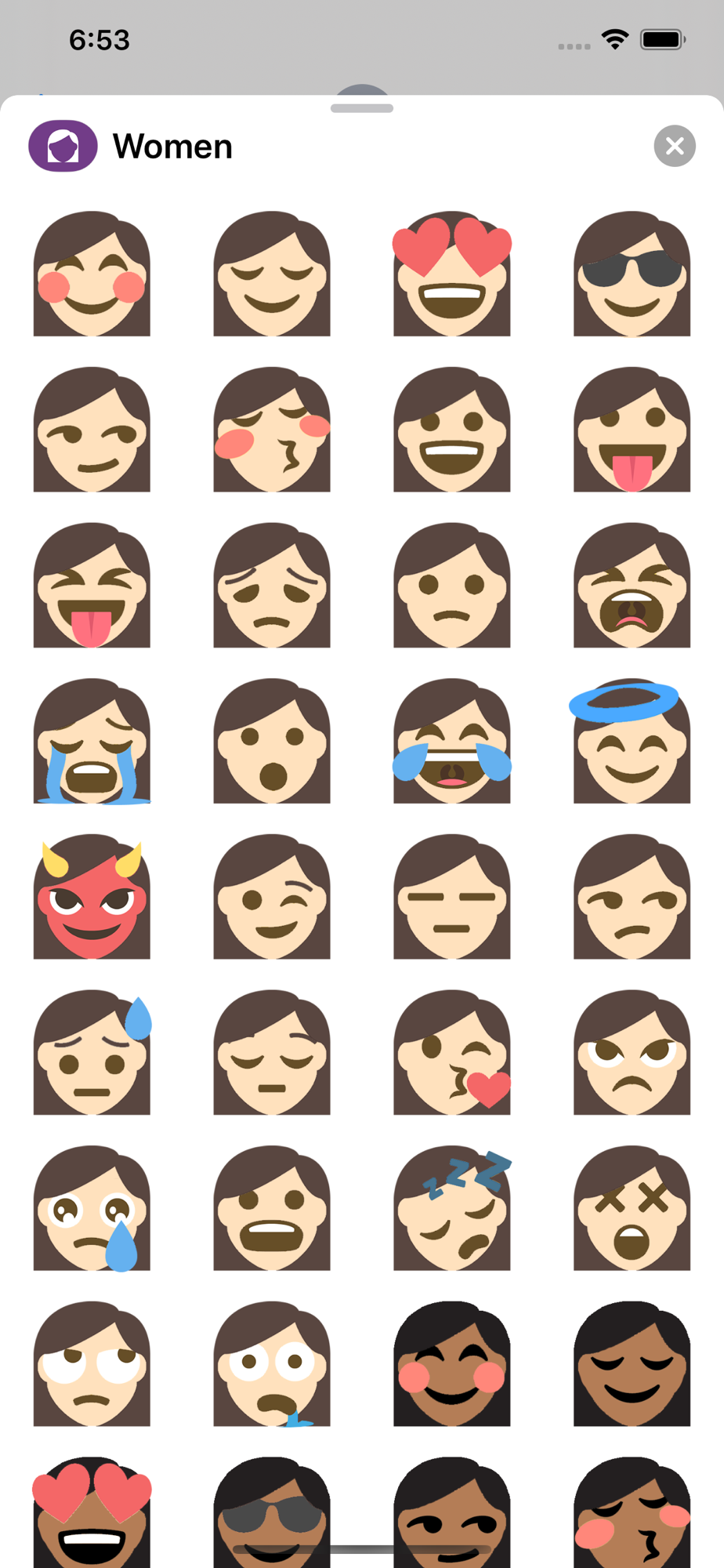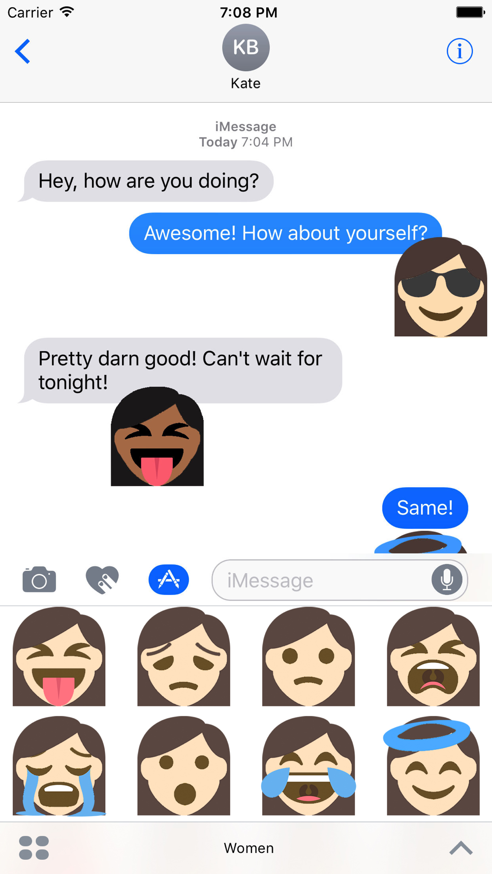 Women emojis for messages! Every emoji you commonly use, now female. Both light and dark skin tones and more hair colors coming soon!