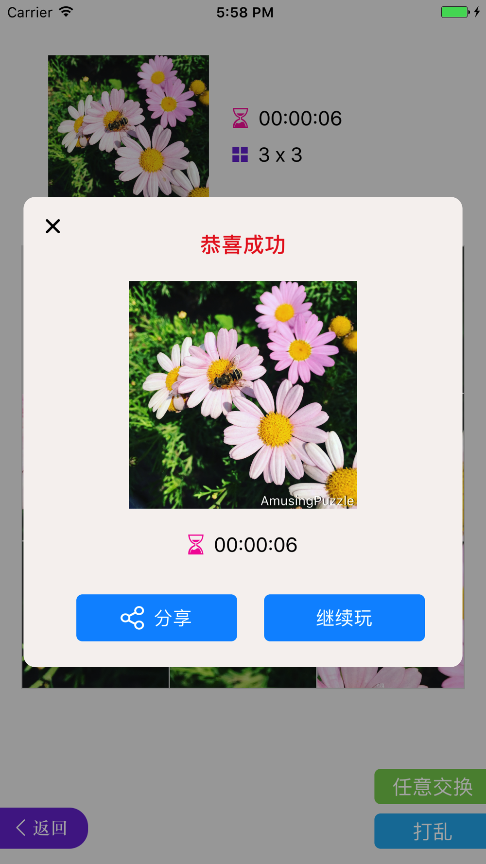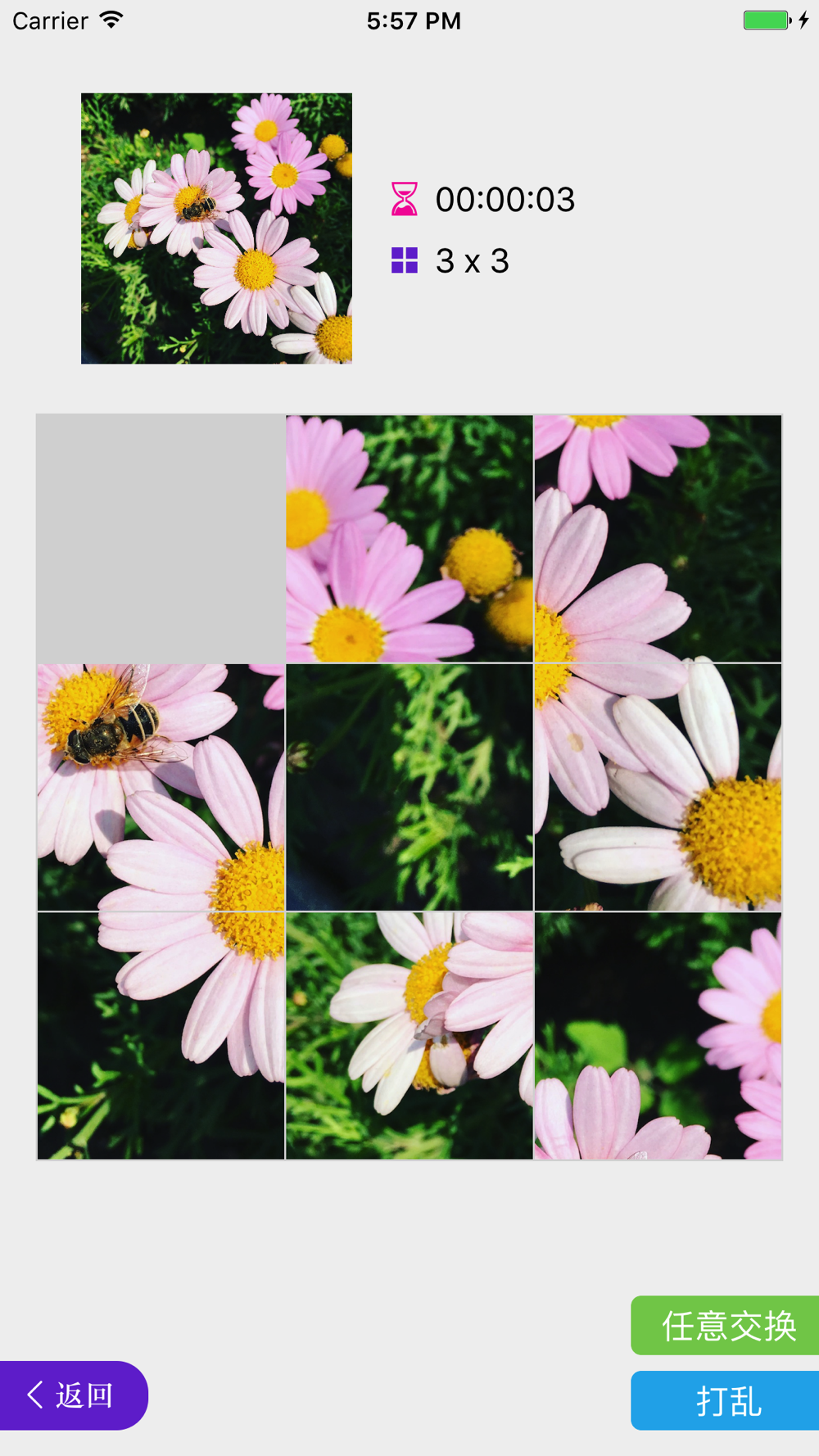 简单益智小游戏,娱乐休闲必备。内置精美图片,又可相册选取,玩起来欲罢不能。画面优美,流畅自如。跟你的小伙伴一起pk一下吧!