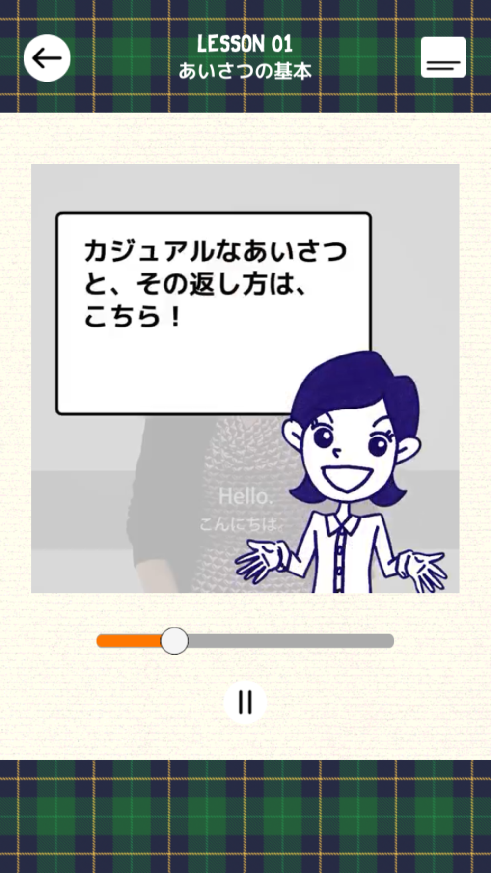 ナビゲーターは自身の実体験をもとにユニークな学習法をまとめ、ベストセラーとなった 「全くダメな英語が 1 年で話せた ! アラフォー OL Kayo の『秘密のノート』」の著者・Kayo ! 実際に Kayo がイギリス生活で何度も使ったという日常会話を、ネイティブが動画で再現、 英会話のポイントを、Kayo が教えてくれます。