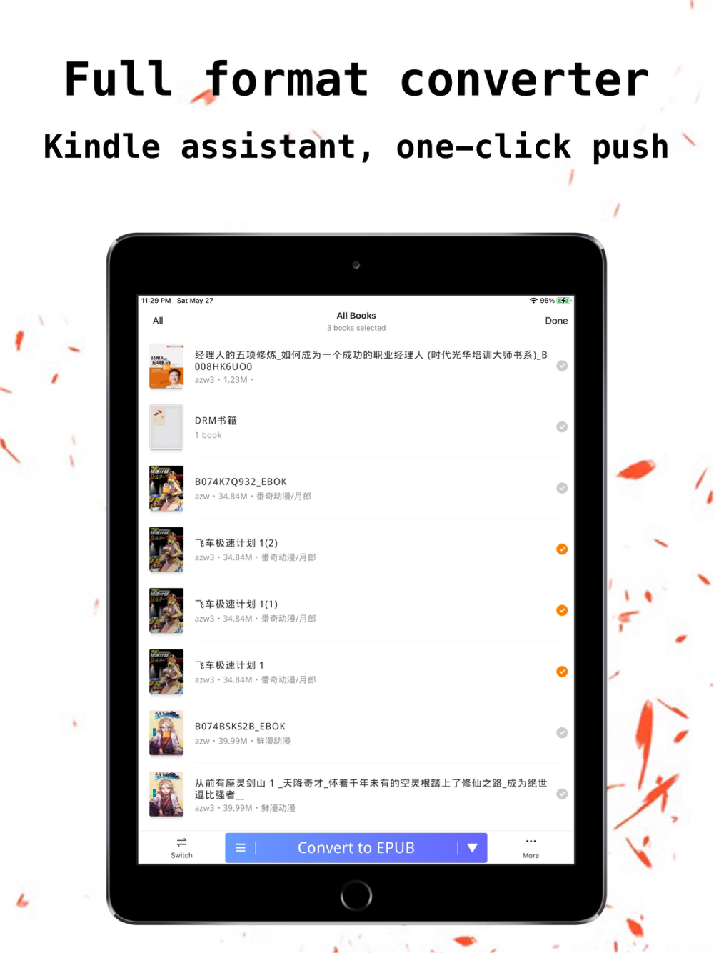 The file converter converts PDF/e-book/office documents into Kindle or iBooks readable format and pushes them directly to Kindle.Batch conversion, editable e-book related information (author, title, description, cover, ISBN, etc.).