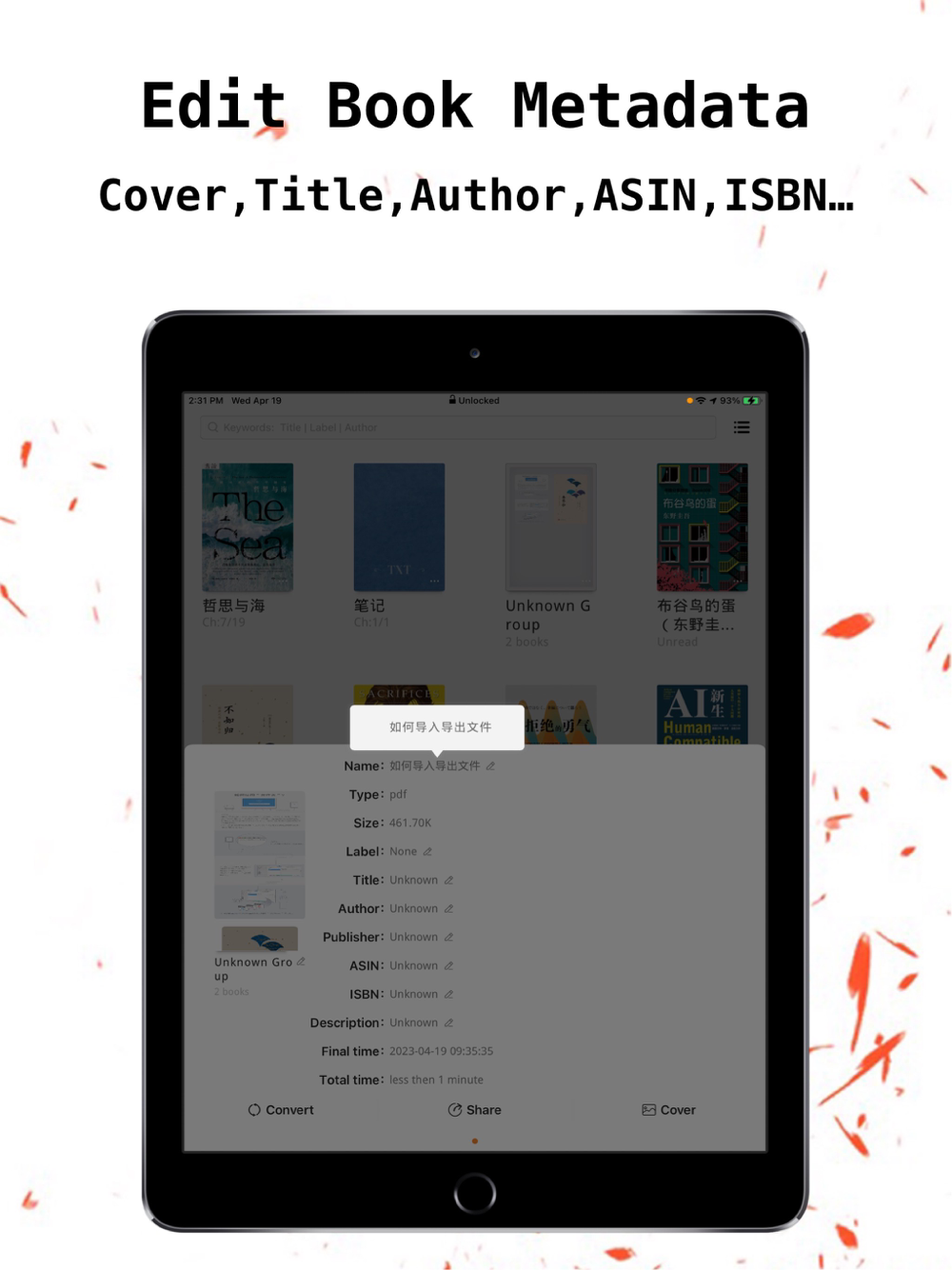 * Edit the contents of various book files, titles, covers, authors...,