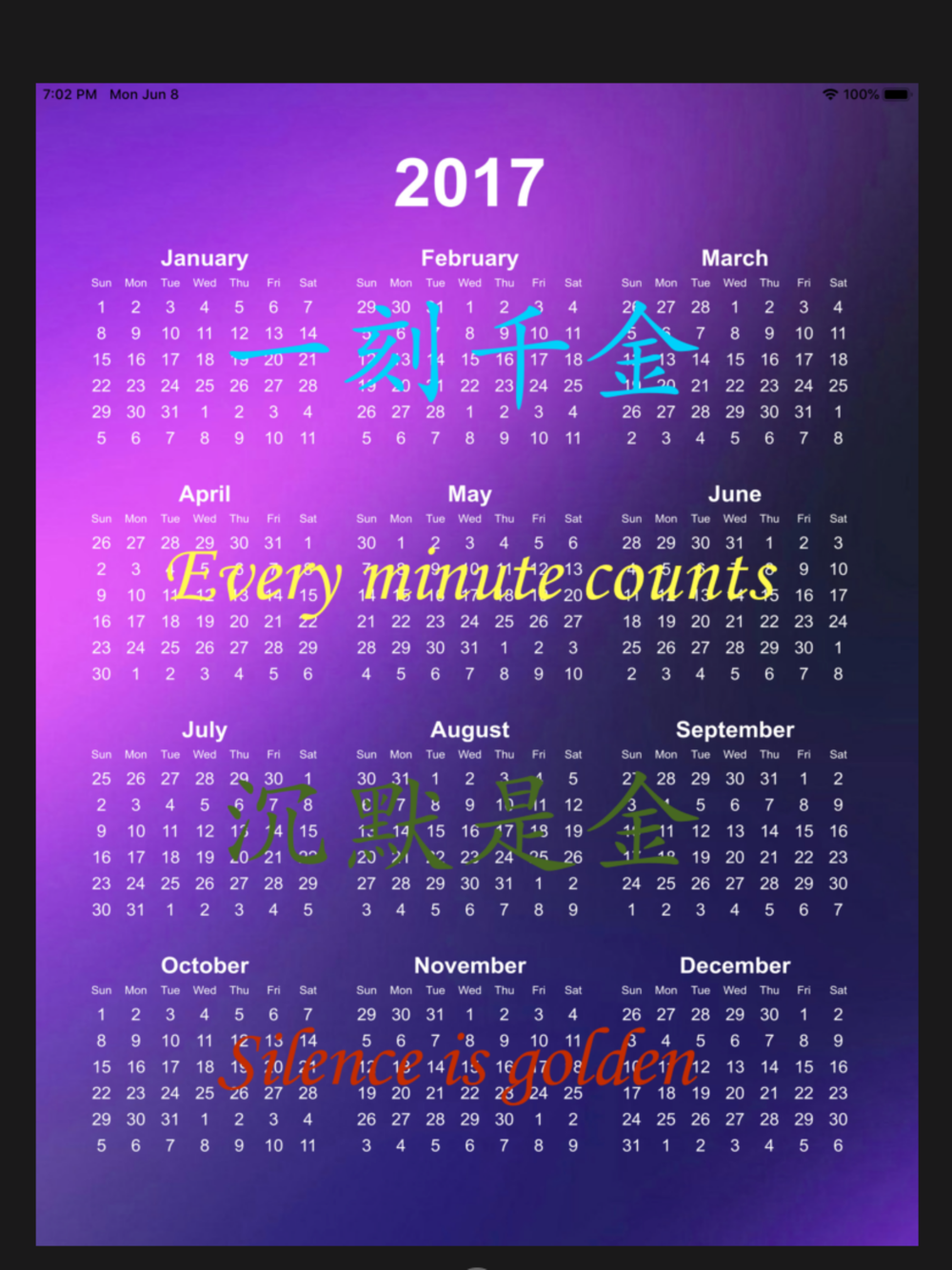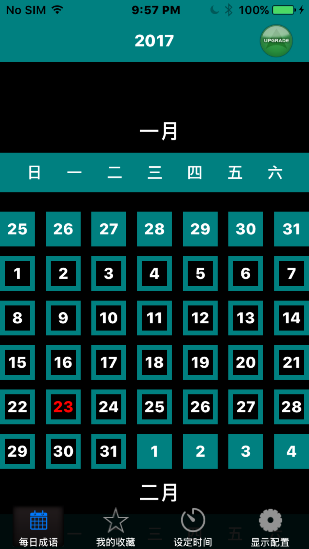 本APP选择了近四百个常用的中国成语,將它们按2017年年曆平均分配在365天裡。