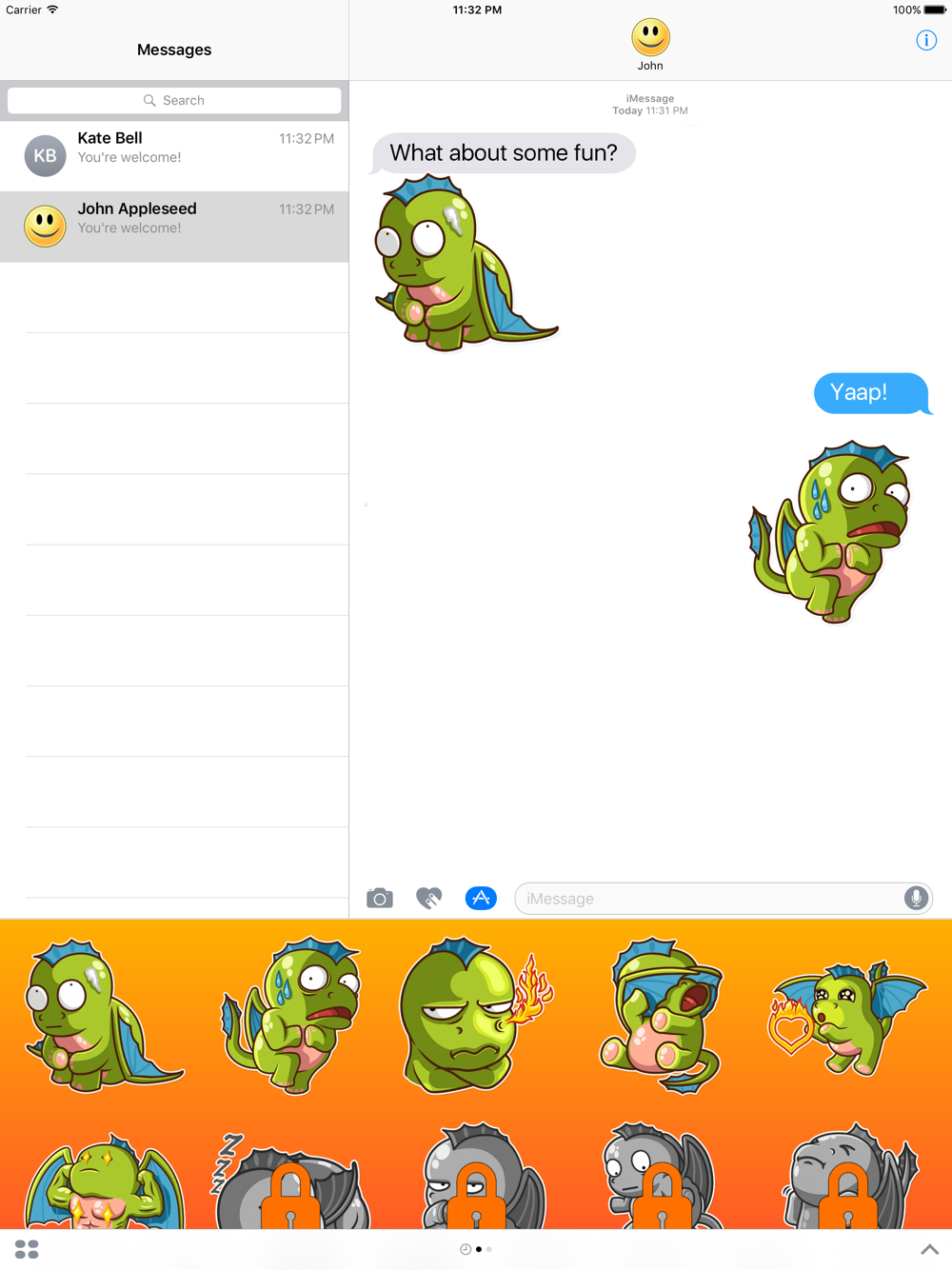 The all-new Green Dragon Stickers pack for iMessage is here. You can tap them, peel them, stick them, resize them, and place them anywhere in your iMessage. Download today!