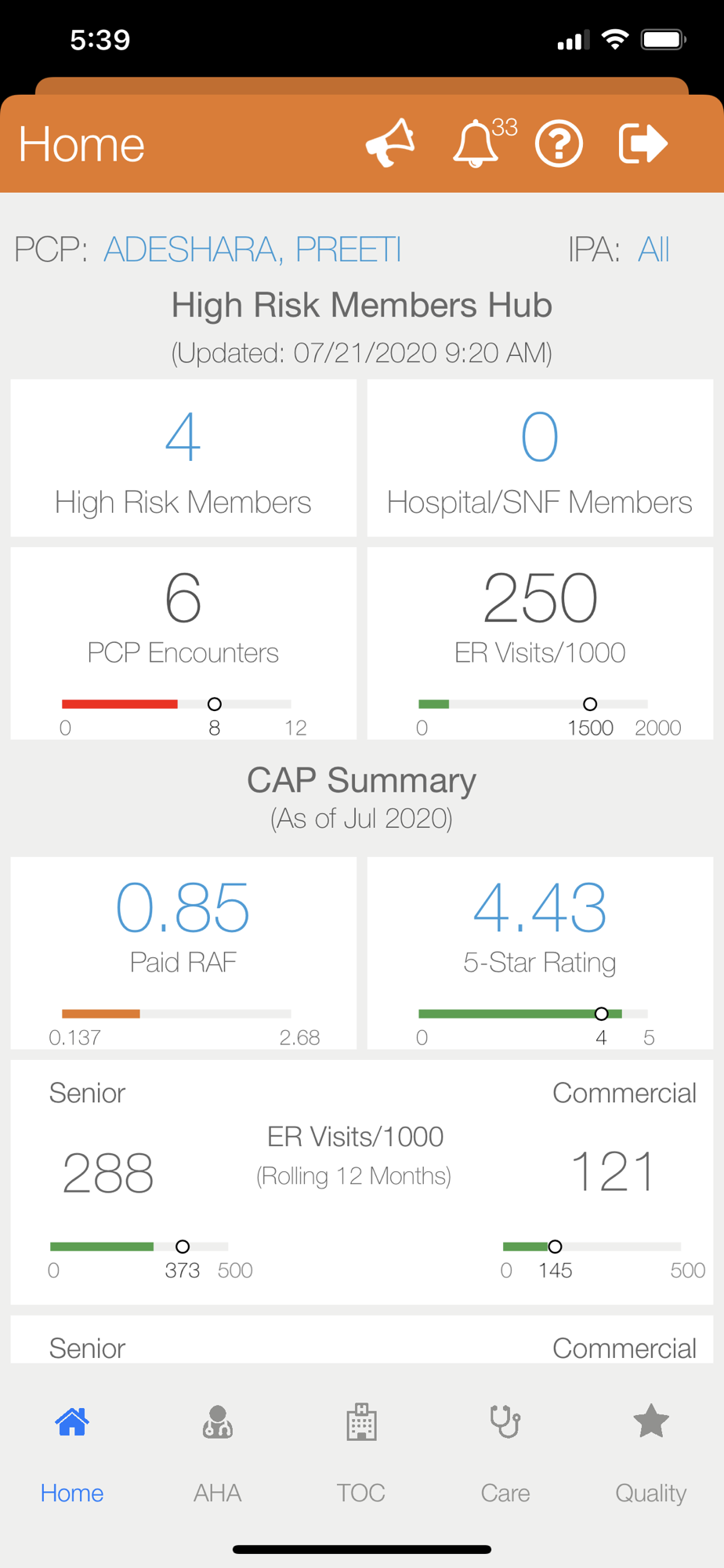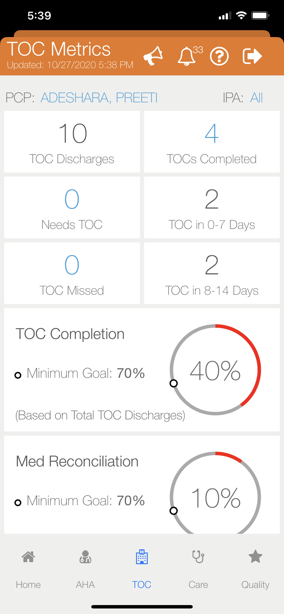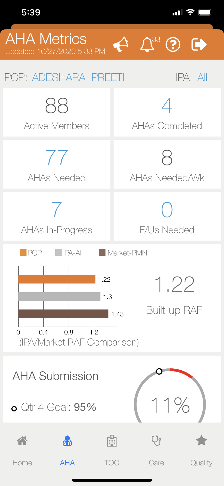 Krypton is an application that provides Optum physicians key metrics and stats on AHA, TOC, Care and Quality measures. Physicians are able to monitor their overall performance in these key areas, and are able to improve patient care. Member level information is also available to enable the providers to manage their top high risk and high cost population.