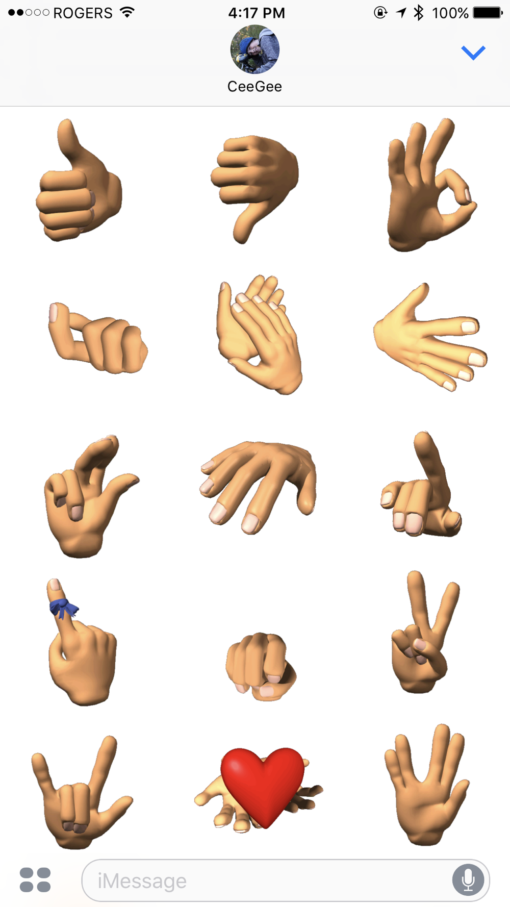 Actions really do speak louder that words when you use these "handy" 3D animated stickers in your messages. Send them in a message of their own or peel them out of the drawer and attach them to a message or image.