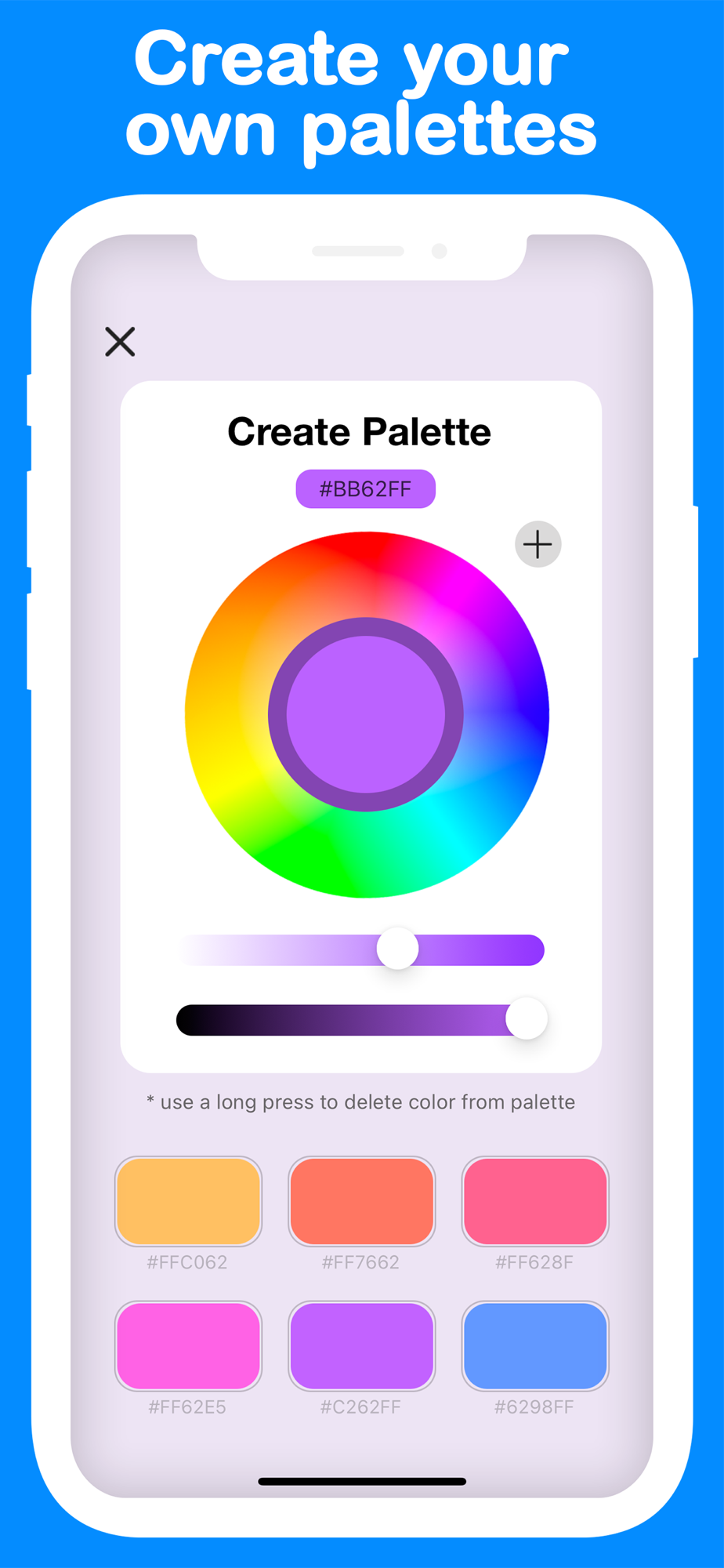 • Hơn 100 bảng màu đẹp hoặc màu sắc không giới hạn với chế độ gradient;