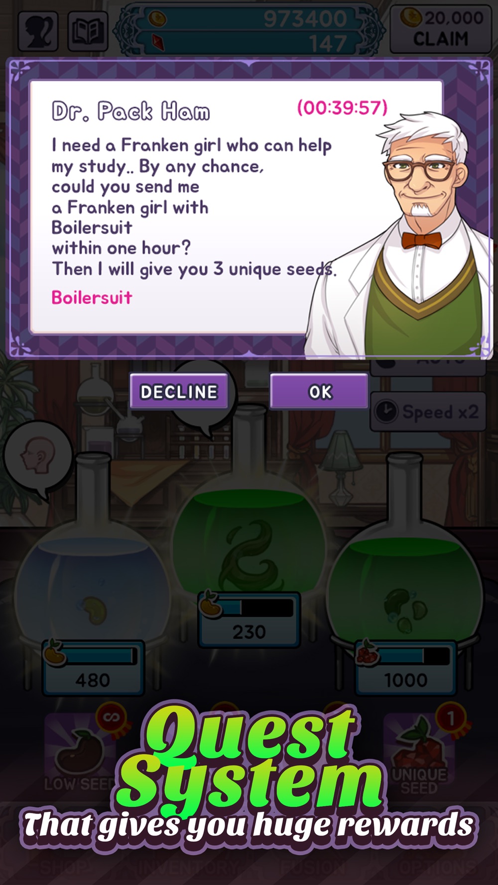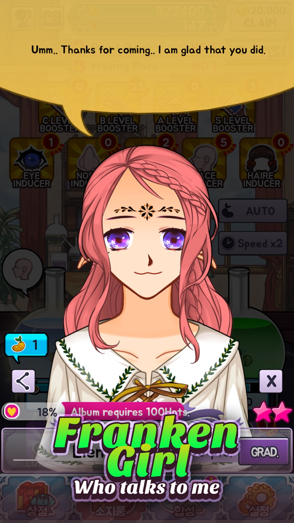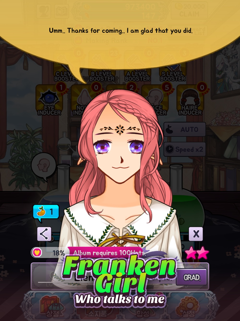 - Laboratory upgrade system that enables player to create high quality franken girls