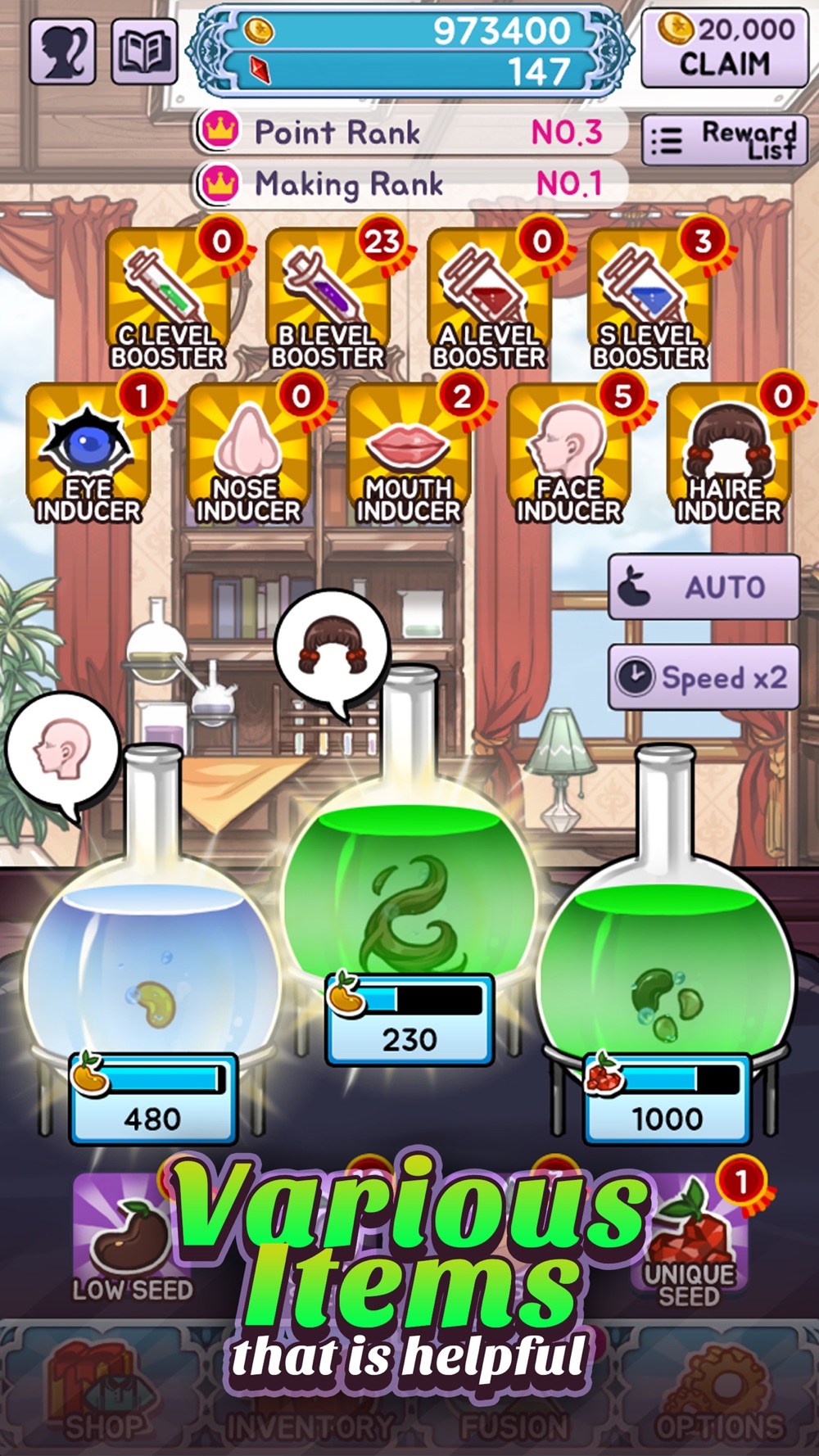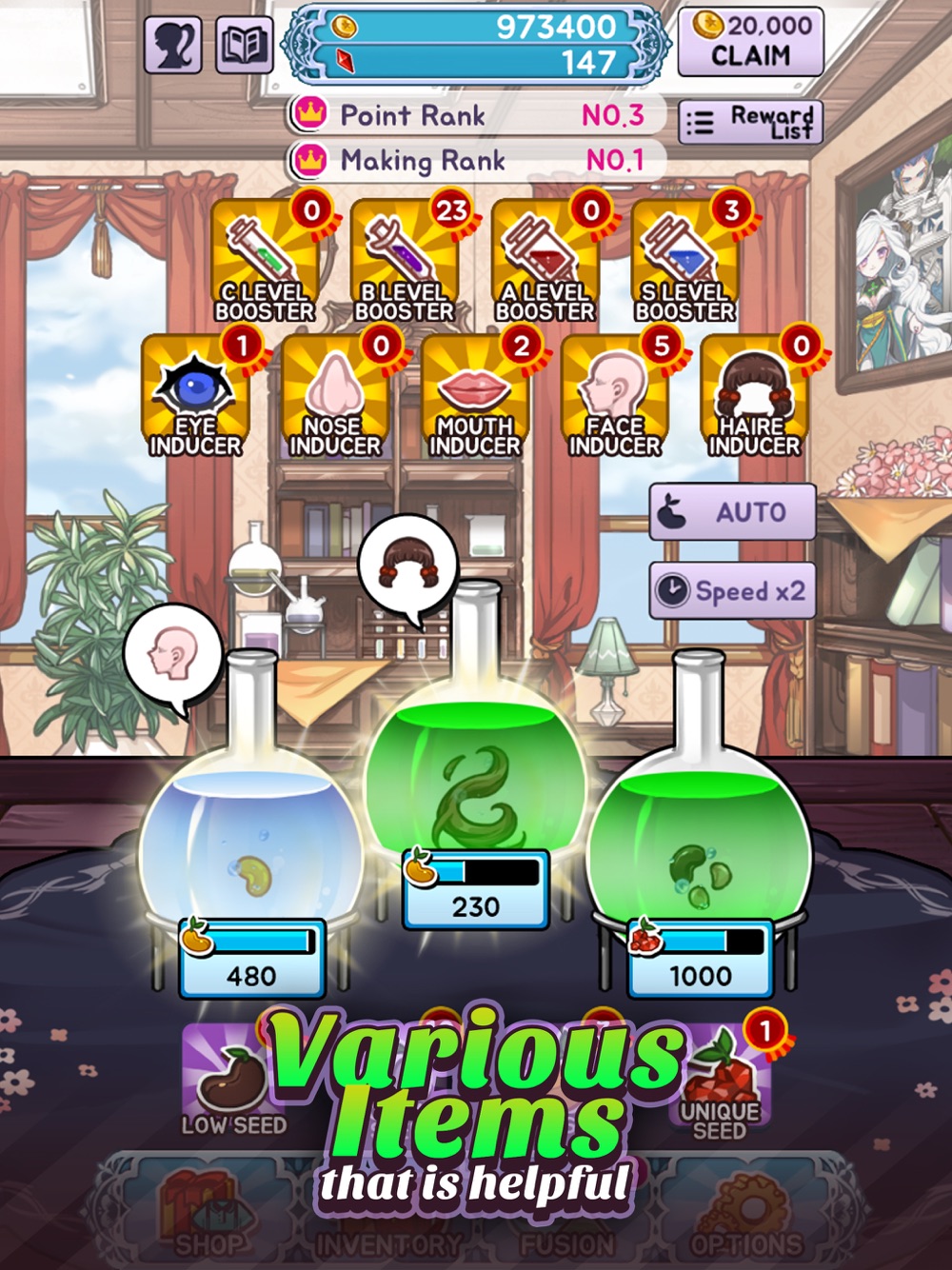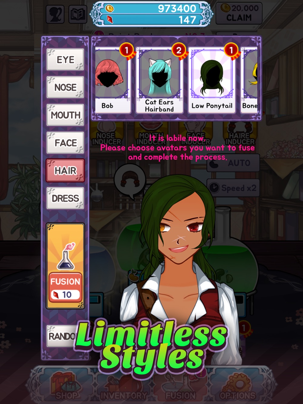- Laboratory upgrade system that enables player to create high quality franken girls