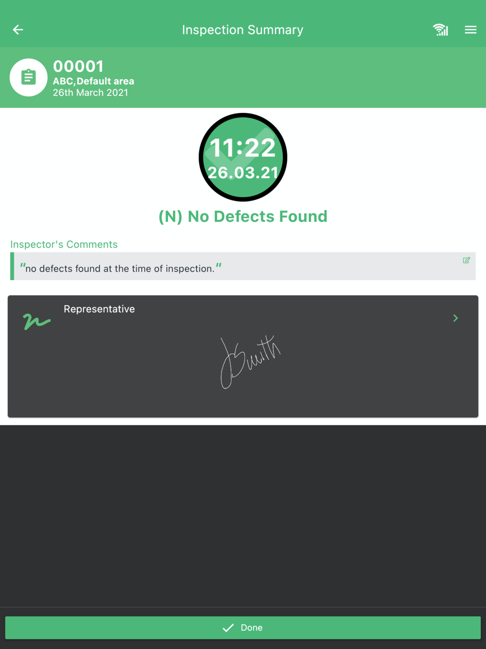 * Automatically uploads a record of each inspection to the cloud