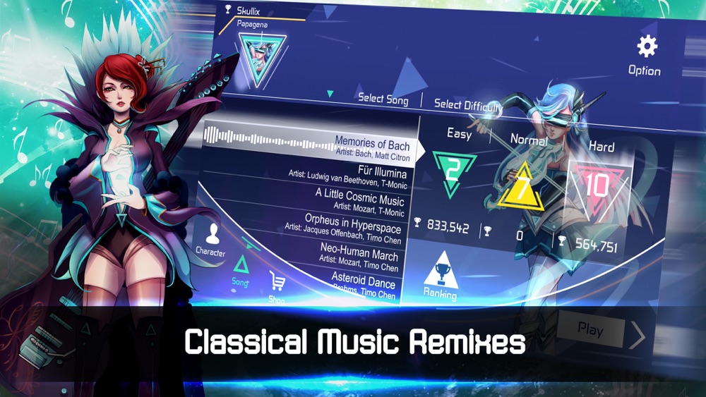 音乐类型包括流行、跳舞、史诗摇滚及经典。随着音乐的节奏点击,于这个独一无二的节奏游戏开展银河系的旅程。
