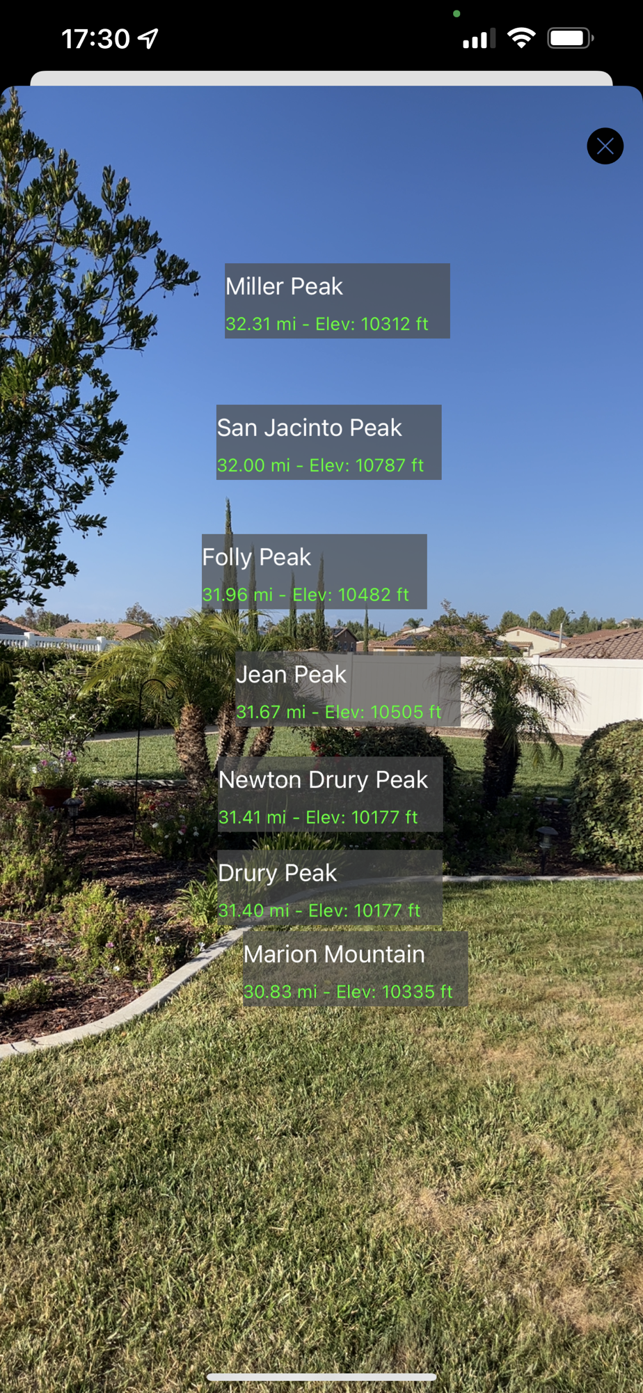 Want to know what the name of that mountain peak or the elevation? It's easy with the AR Earth app. Simply select "Peaks" then "AR View" and aim your camera at it.