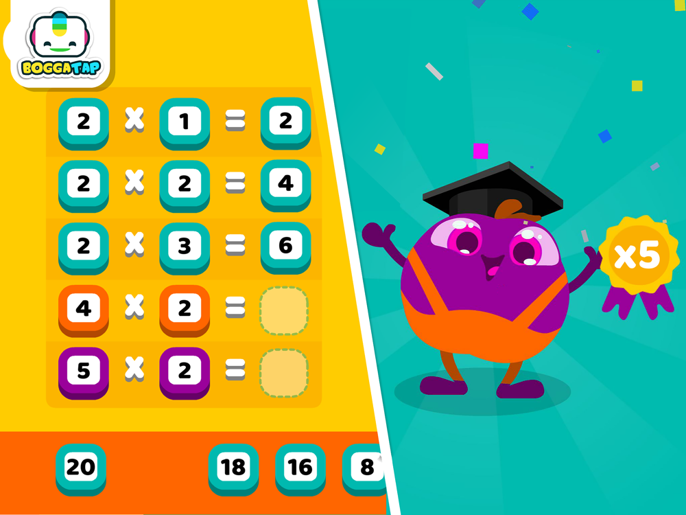 Bogga Times Tables detects and repeats your frequent mistakes. It also empowers children to be playful, and strengthens the sequential abilities, attention and fine motor skills.