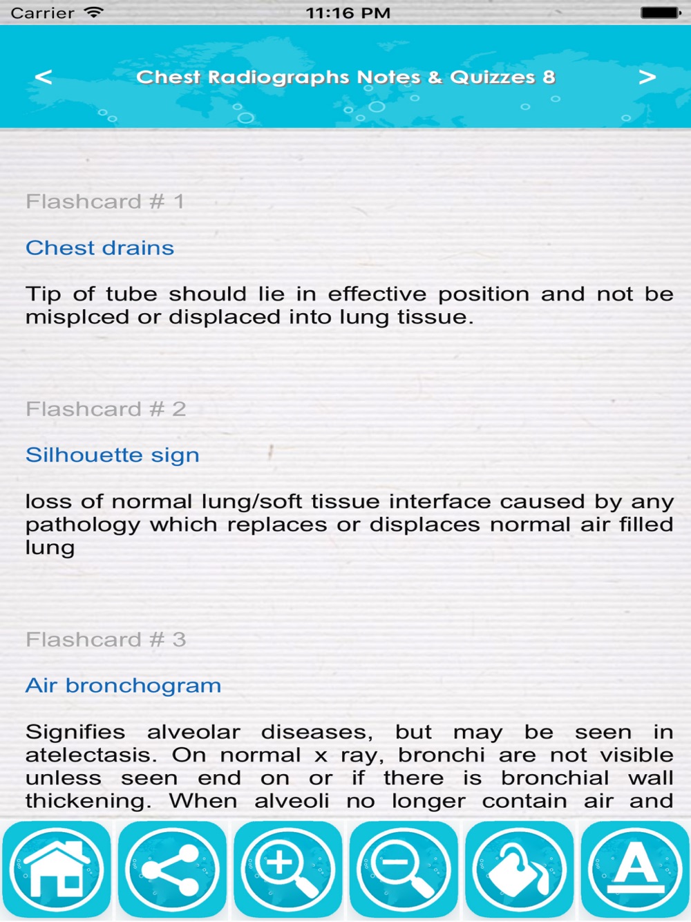 This app is a combination of sets, containing practice questions, study cards, terms & concepts for self learning & exam preparation on the topic of Chest Radiographs.