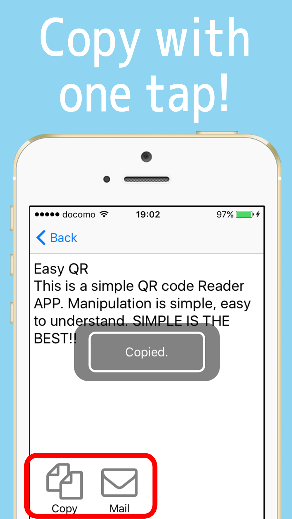 This is a simple QR code Reader APP. Manipulation is simple, easy to understand. SIMPLE IS THE BEST!!