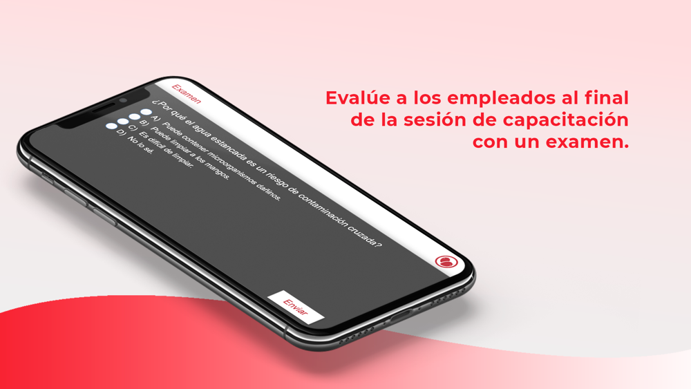 Cada App de capacitación en inocuidad de los alimentos del mango incluye actividades interactivas, videos y exámenes para asegurar que los empleados estén involucrados a lo largo del curso. Al final de cada aplicación, hay un cuestionario con preguntas de opción múltiple o una actividad para verificar que el empleado ha aprendido correctamente la información presentada en la App.