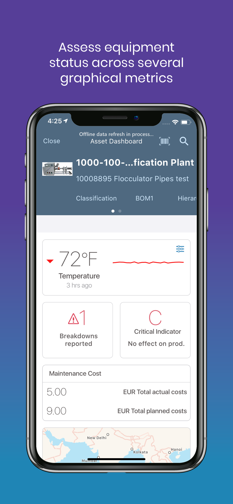 The mWorkOrder mobile app is a part of the work order management software suite. This tool connects back-end work order management with floor- or field-based technicians to streamline how work orders are assigned, tracked, resolved, and reported. With secure access to the full work order scope, technicians can review histories and study asset information to quickly diagnose and repair issues.
