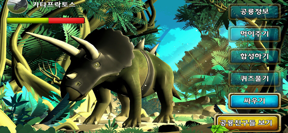 어플리케이션 입니다. 12종의 다양한 공룡과 합성된 공룡으로 재밌는 게임도 즐기고 공룡을 공부할 수 있습니다.