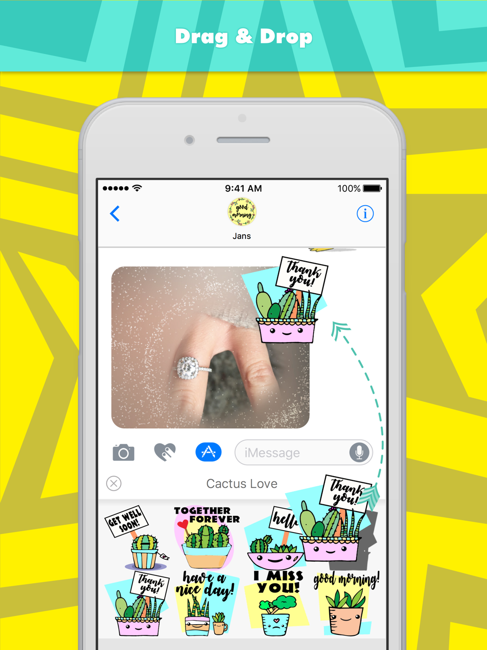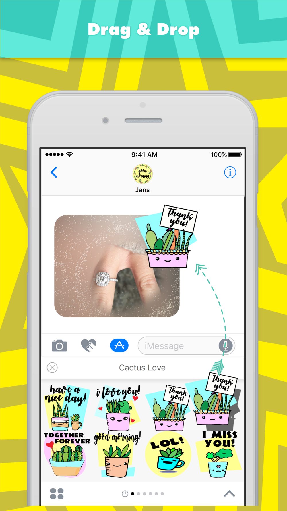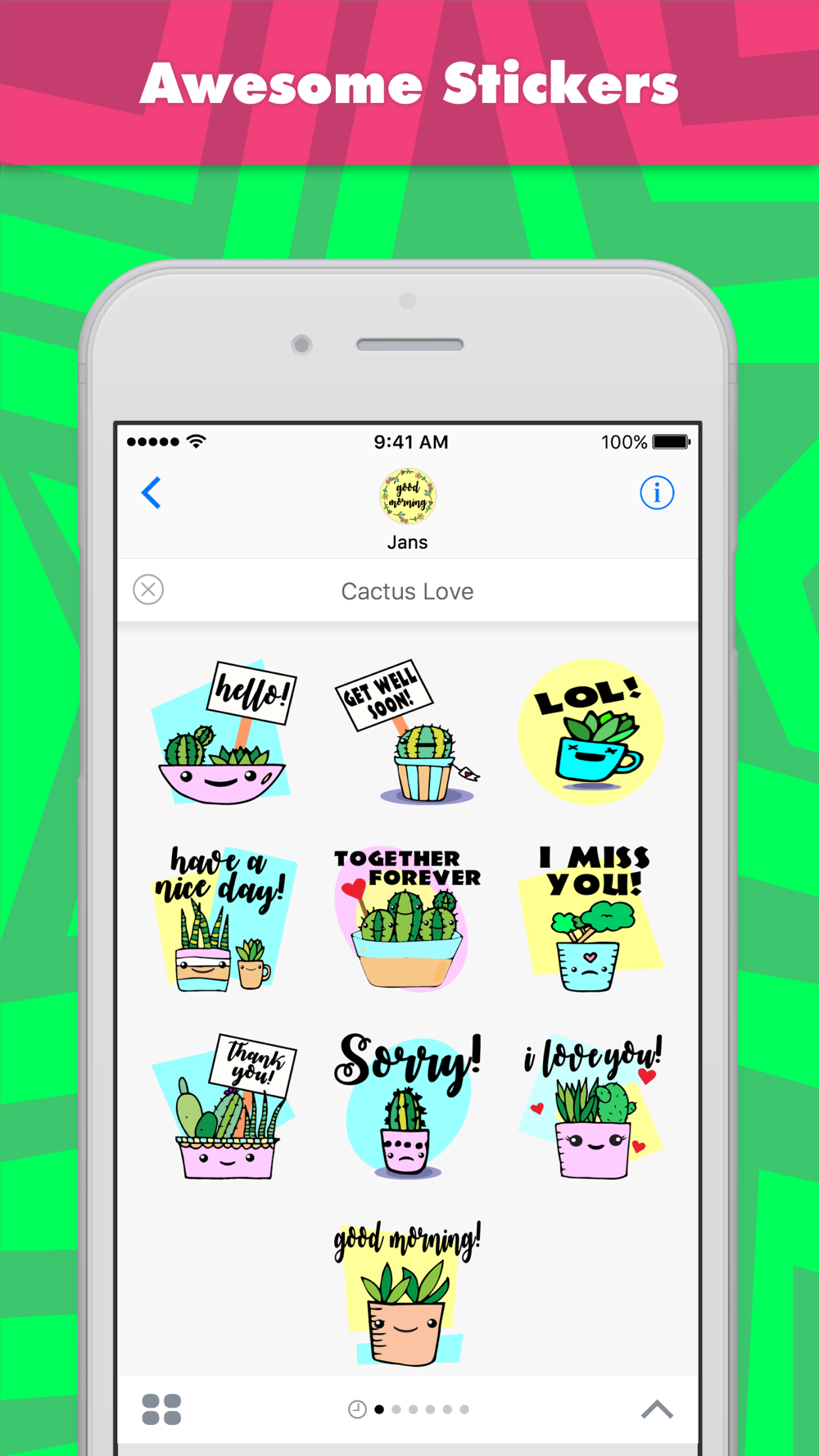 Los adhesivos Cactus Love son diseñados por jans y son desarrollados por MojiLaLa.
