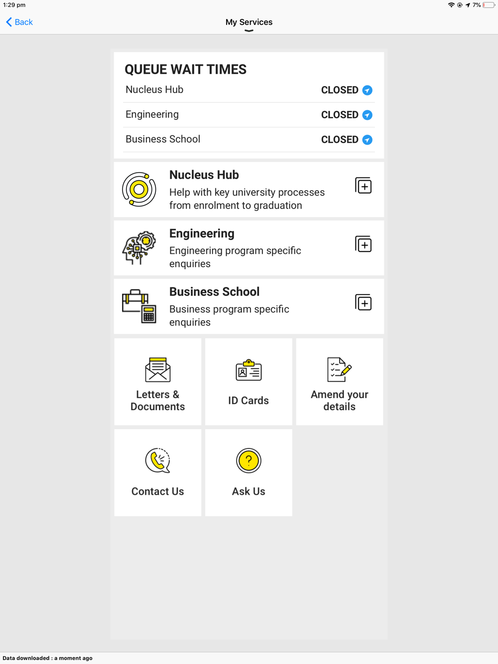 • Maps- Navigate your way around campus to find buildings, accessible routes, parking, food and retail and much more