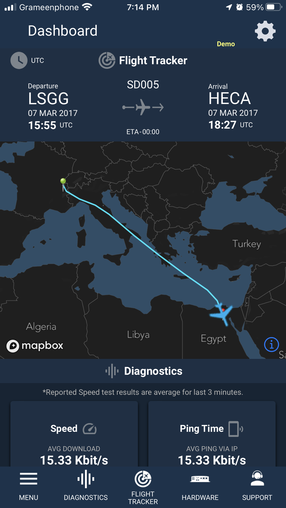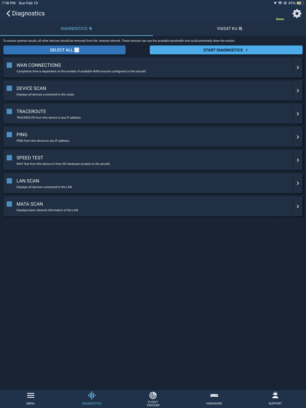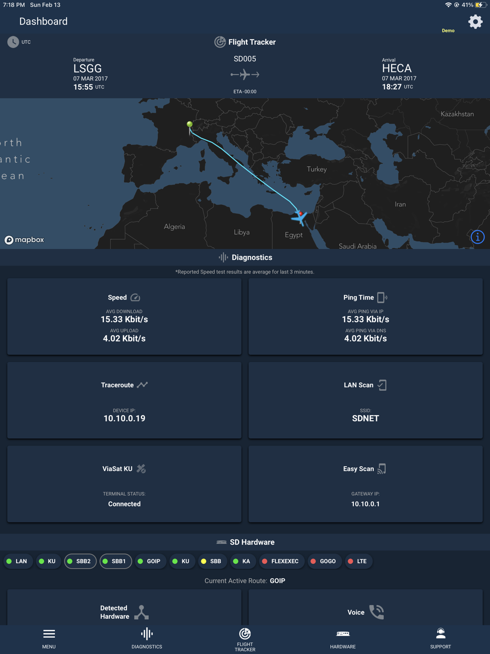 The SD Cabin app simplifies the in flight connectivity experience through seamless access to multiple key functions from a single application while on board an aircraft equipped with SD Hardware. SD Cabin dynamically detects the services activated on your aircraft and enables access to functions based on these services. SD Cabin provides trip information, device and network connectivity management, basic and advanced troubleshooting tools, plus valuable access to our award winning Satcom Direct Support team.