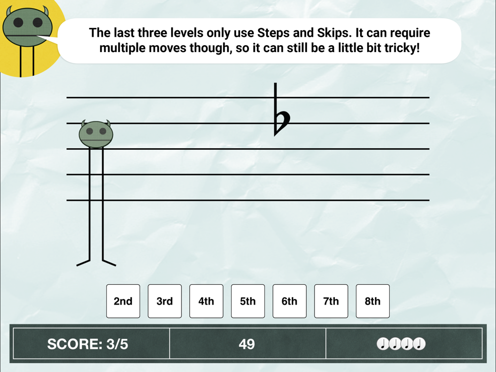 It's time to feed the Mini Monster! Help feed the friendly monster delicious notes, sharps and flats by identifying and guiding them to the correct position on the staff. The first three levels use Skips & Steps, while the last four levels use interval values. Add a countdown timer for additional challenge! Mini Monster is a great way to learn and reinforce the identification of intervals on the staff.