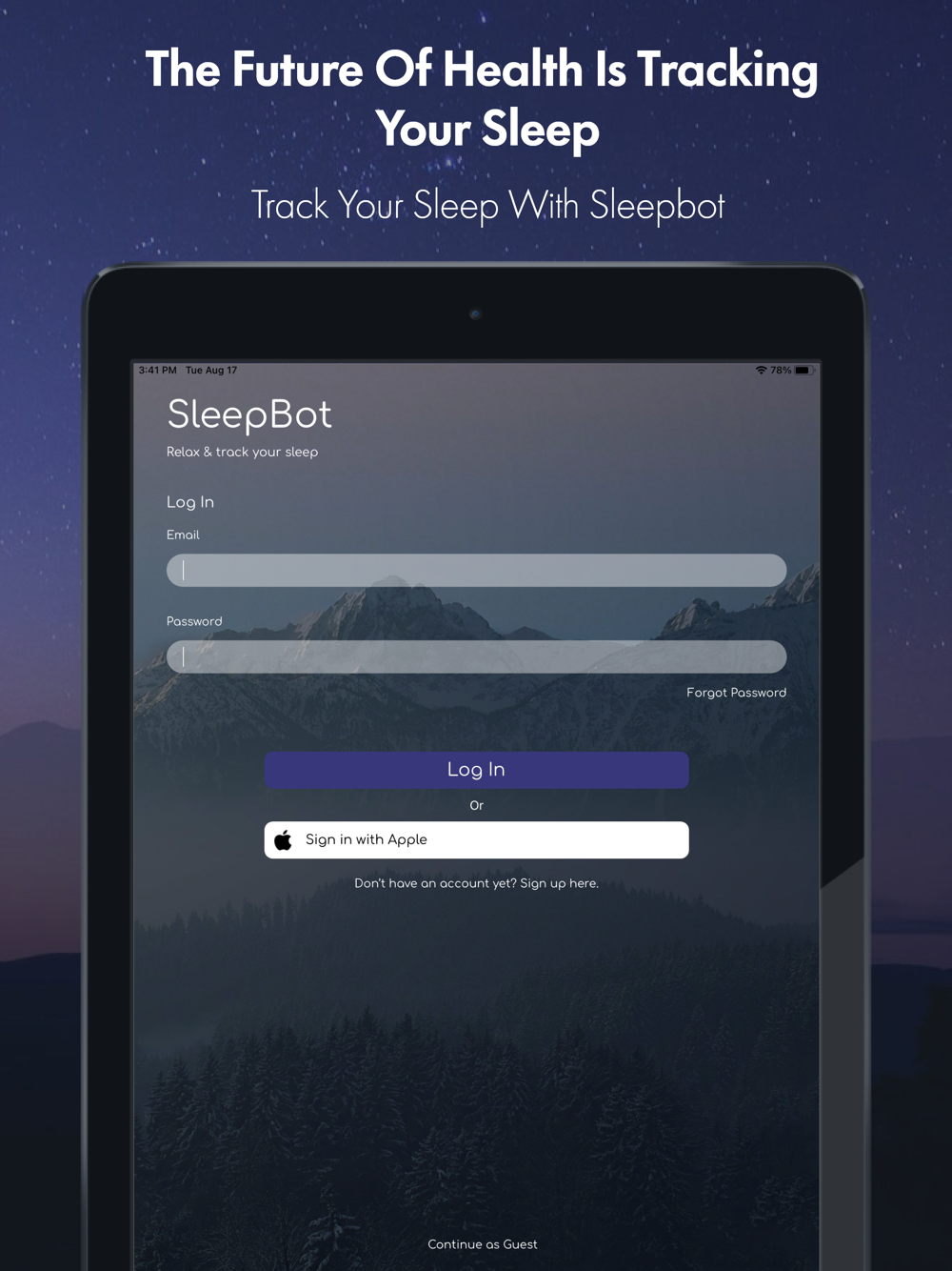 The future of your health is tracking your sleep. Track your sleep with Sleepbot, the most user-friendly sleep tracking app for the Apple Watch and iPhone. Sleepbot is an advanced health app for iOS that uses a trained AI model to analyze your sleep patterns and enhance your sleep quality.