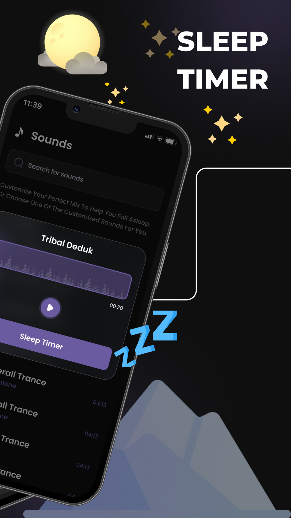 You can create your perfect mix from our 100+ sounds to help you fall asleep. Or, choose one of the customized sounds for you.