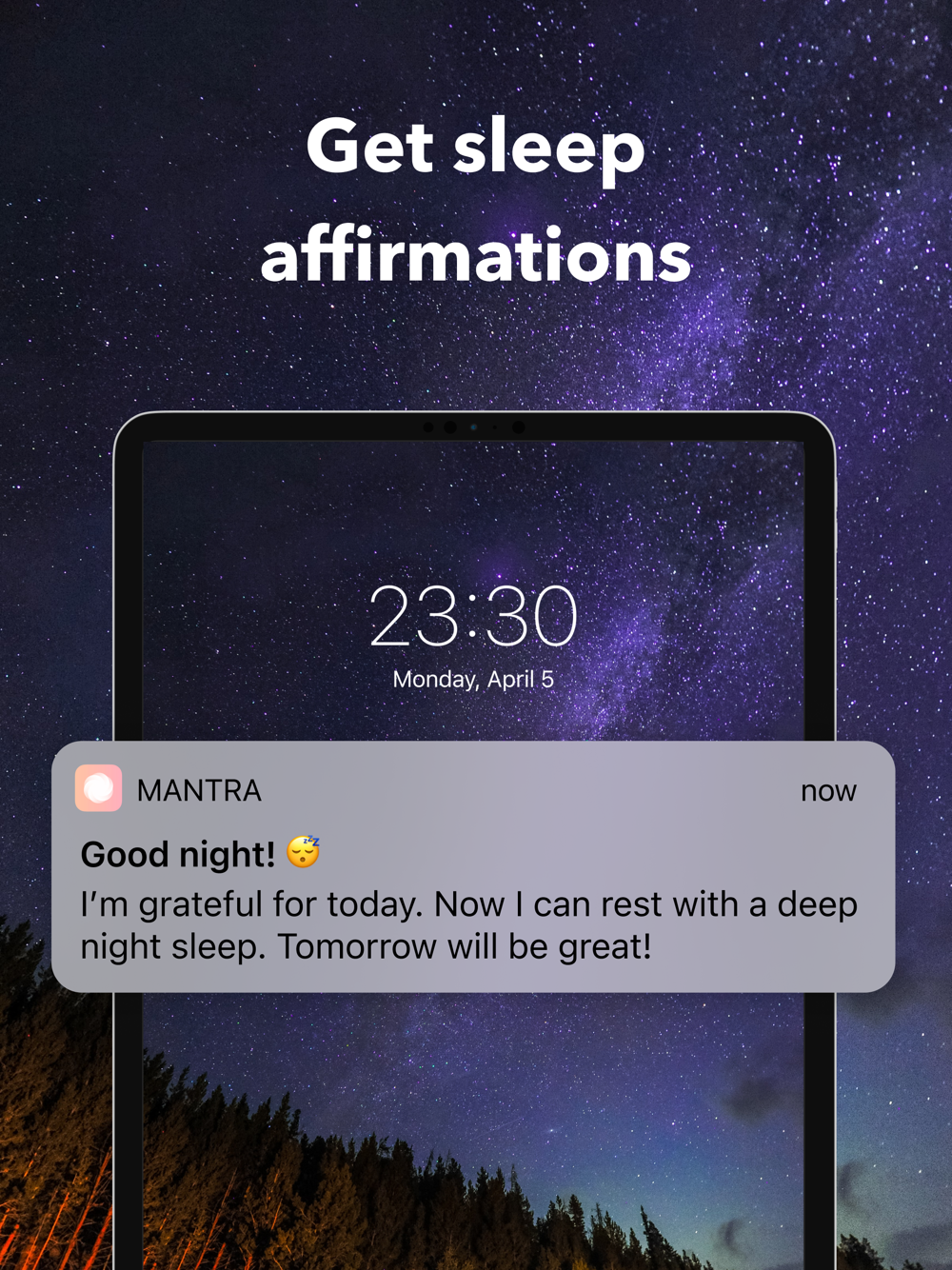 • Smart daytime and bedtime affirmation reminders (as push notifications)