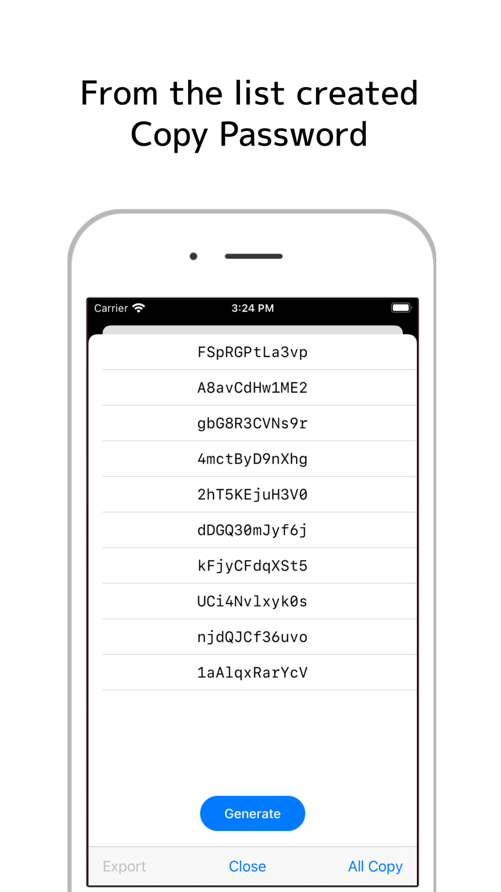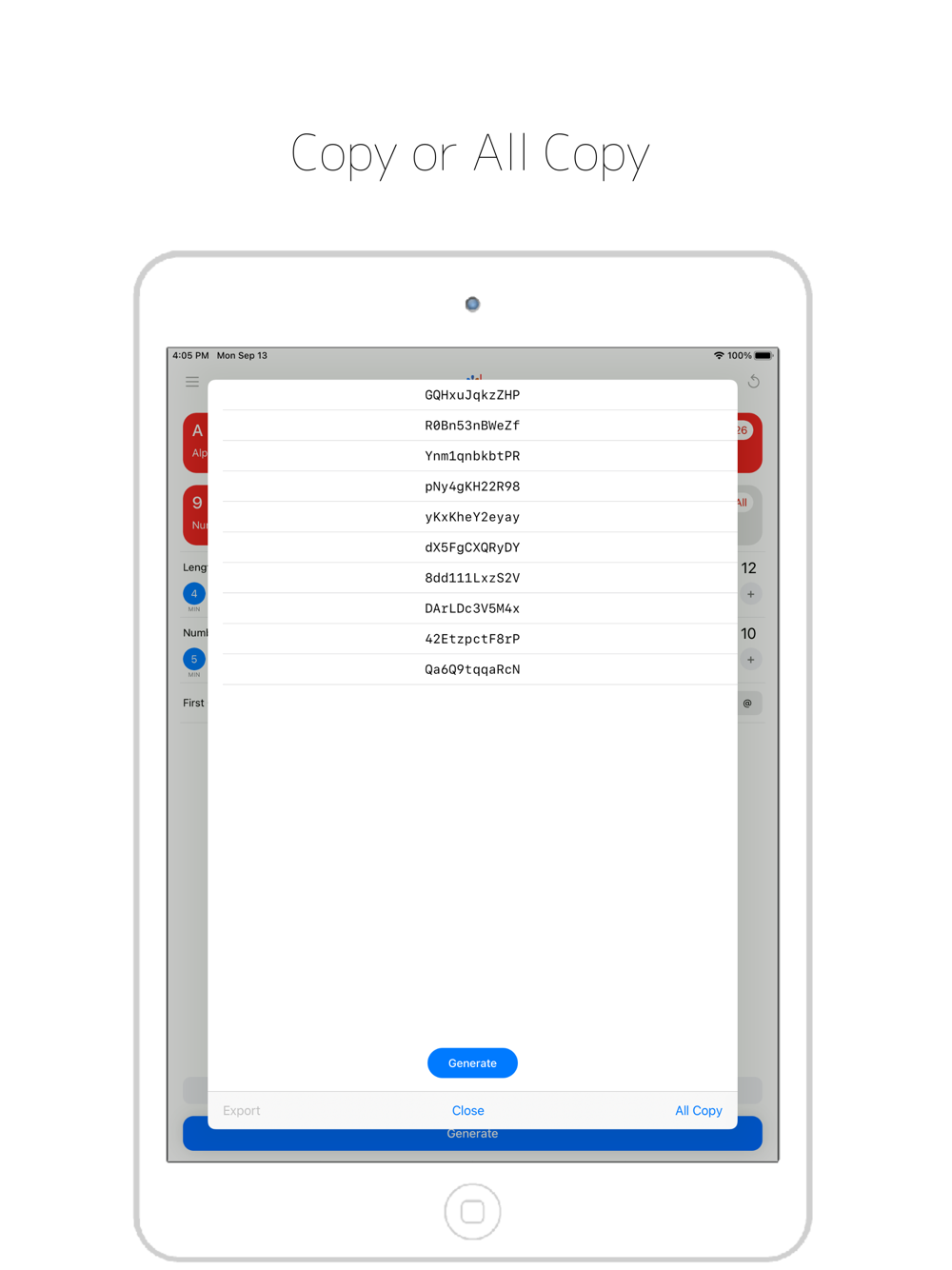 Simply select a letter, number, or symbol and select the length of the password and the number to create, you can easily create a password.