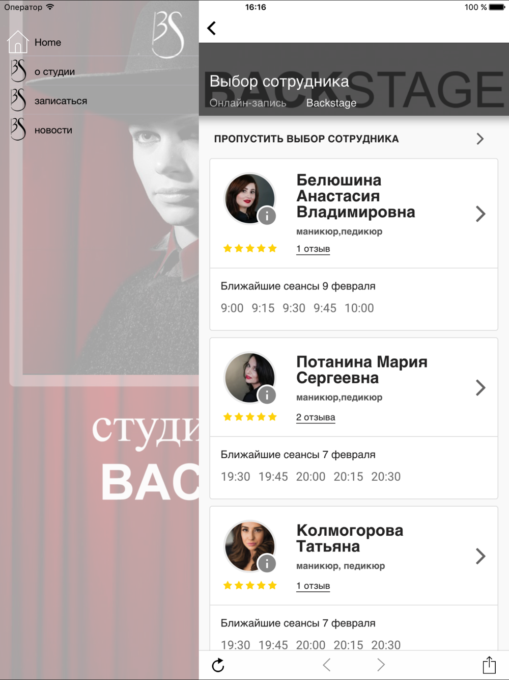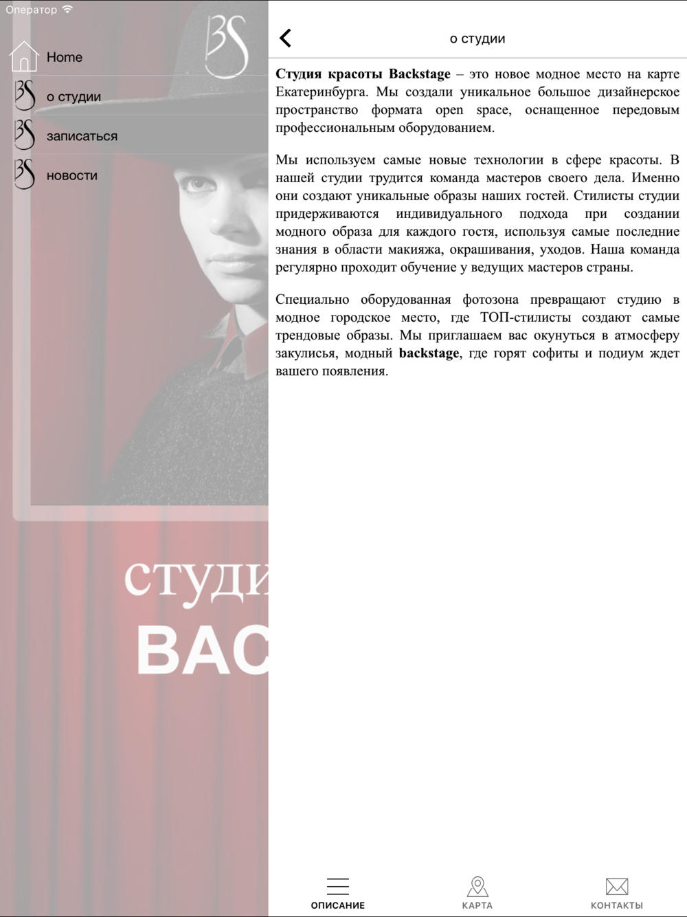 Студия красоты Backstage – это новое модное место на карте Екатеринбурга. Мы используем самые новые технологии в сфере красоты. В нашей студии трудится команда мастеров своего дела. Именно они создают уникальные образы наших гостей. Стилисты студии придерживаются индивидуального подхода при создании модного образа для каждого гостя, используя самые последние знания в области макияжа, окрашивания, уходов.