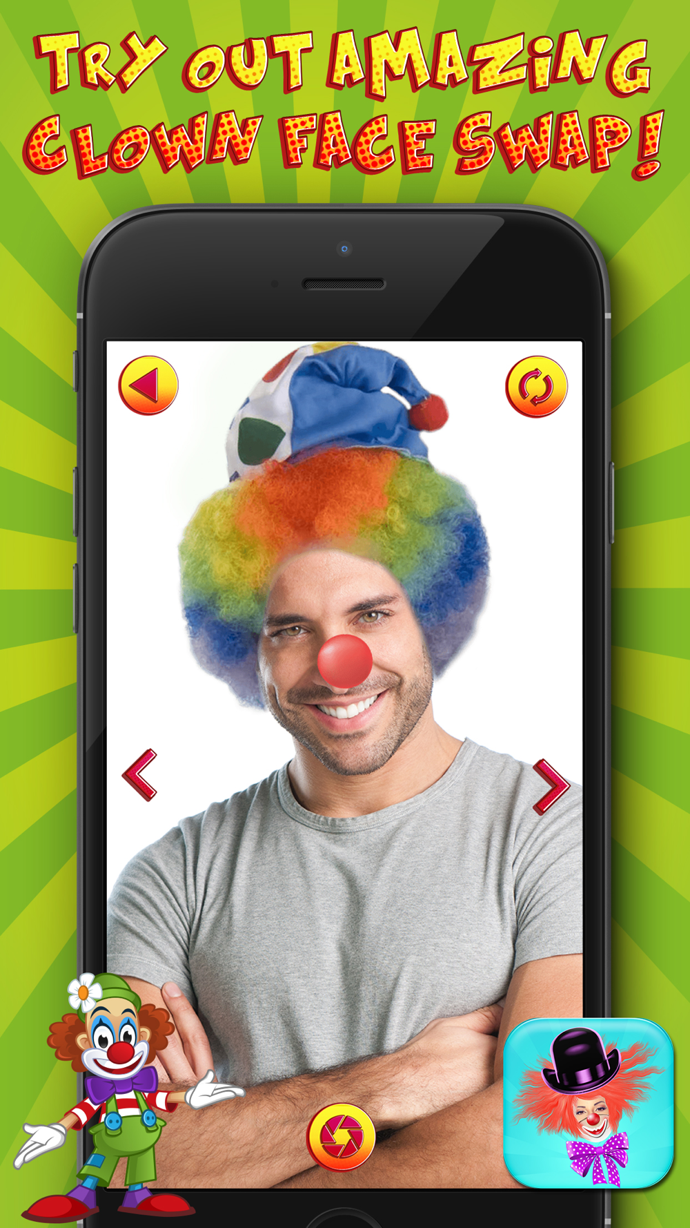 Have fun with your friends and family with an amazing face changer clown camera! Show the world how fun and cool you can be and become the most popular person among your friends on social networks! Start image editing right now and download Clown Face Changer app for free for the best photo fun ever!