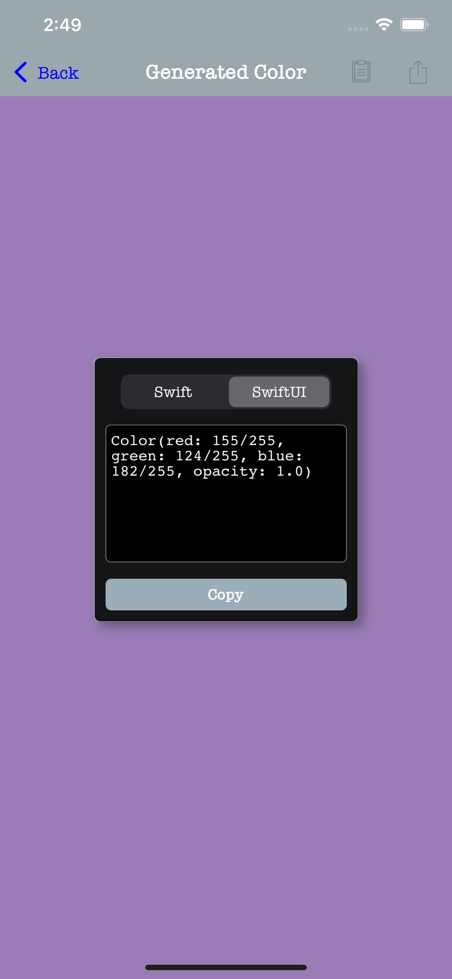 You can see what color it is in full screen display. At the same time, you are able to generate program code, so you just send it to Mac with any sharing method you like.