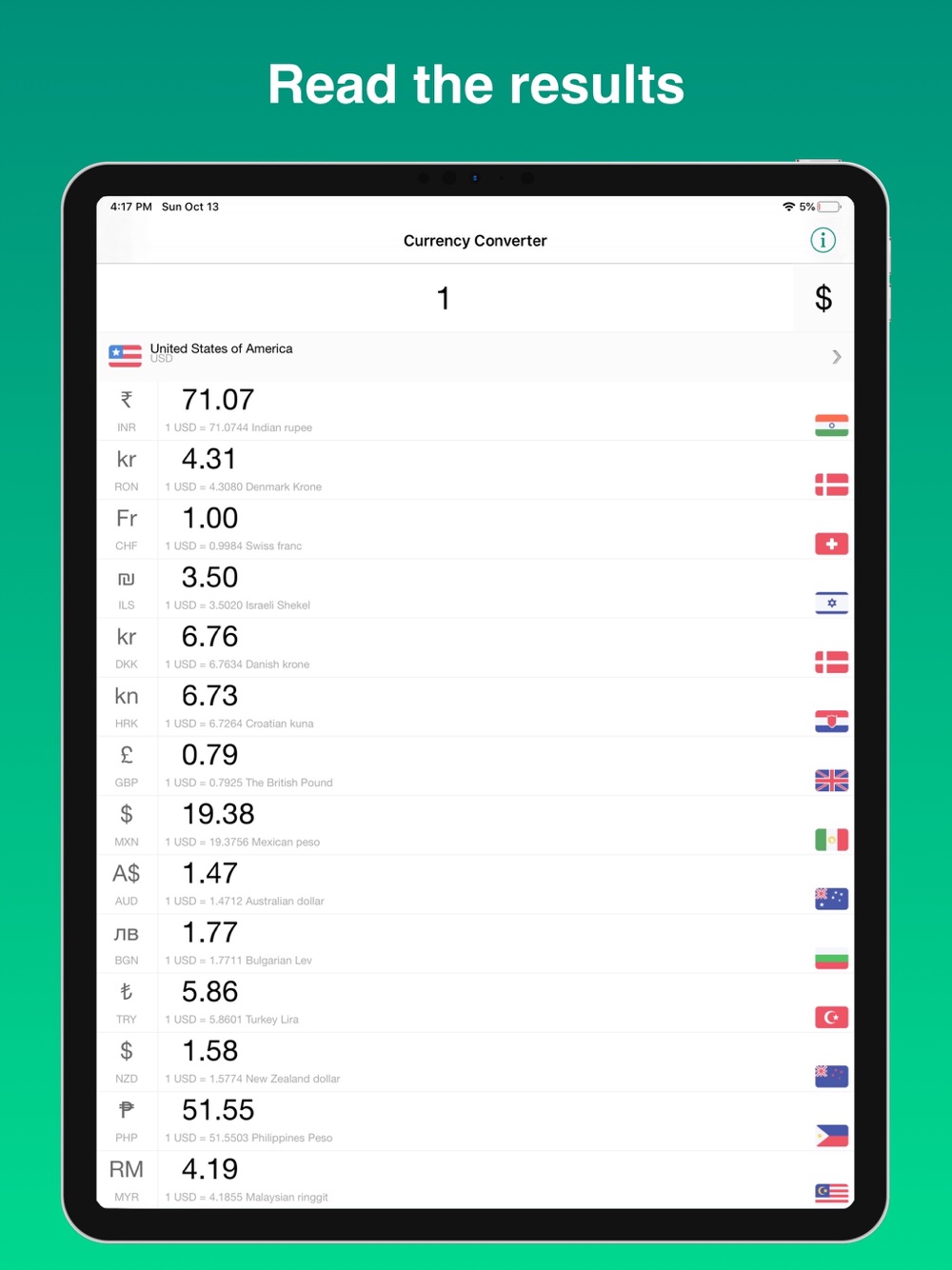 Convert every world currency with just one click, with our Universal Currency converter App (Free!). Compatible with any iPhone/iPad