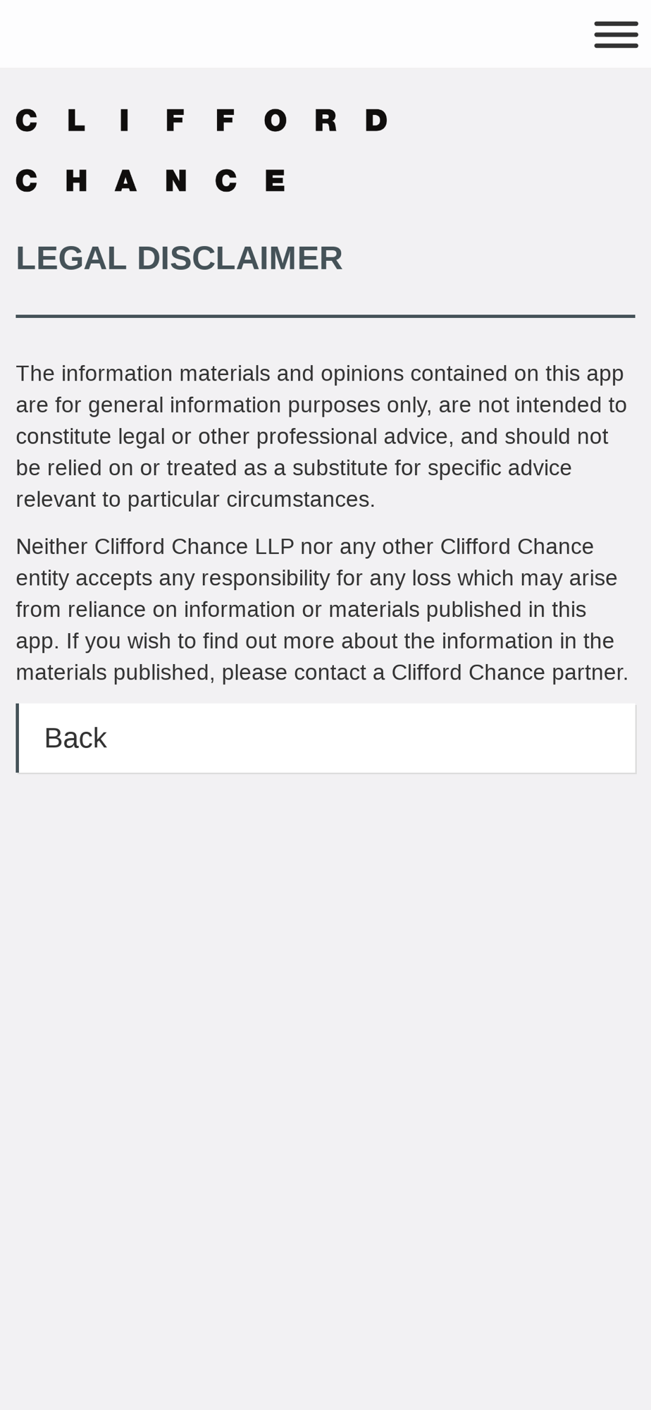 • Clifford Chance customers can login to have access to detailed guidance to 15 jurisdictions.