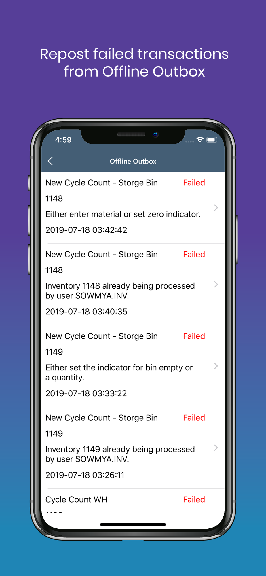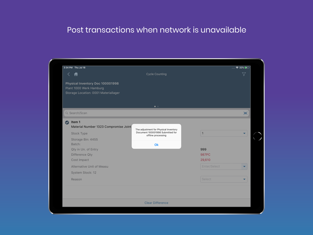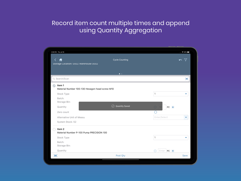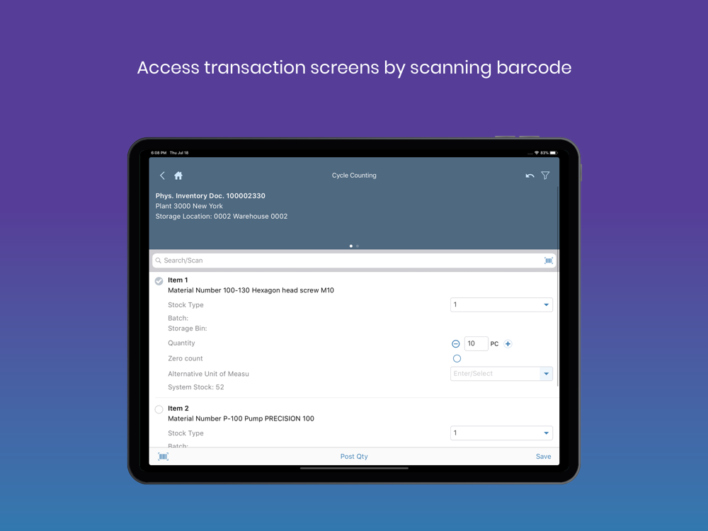 The mInventory mobile app allows your organization to perform cycle counts from the warehouse floor, view and cross-check information across multiple locations, seamlessly transfer assets, and track stock movement with precision across plants and storage locations. Replace cycle count sheets, pick tickets, and scratch pads with a remarkably intuitive