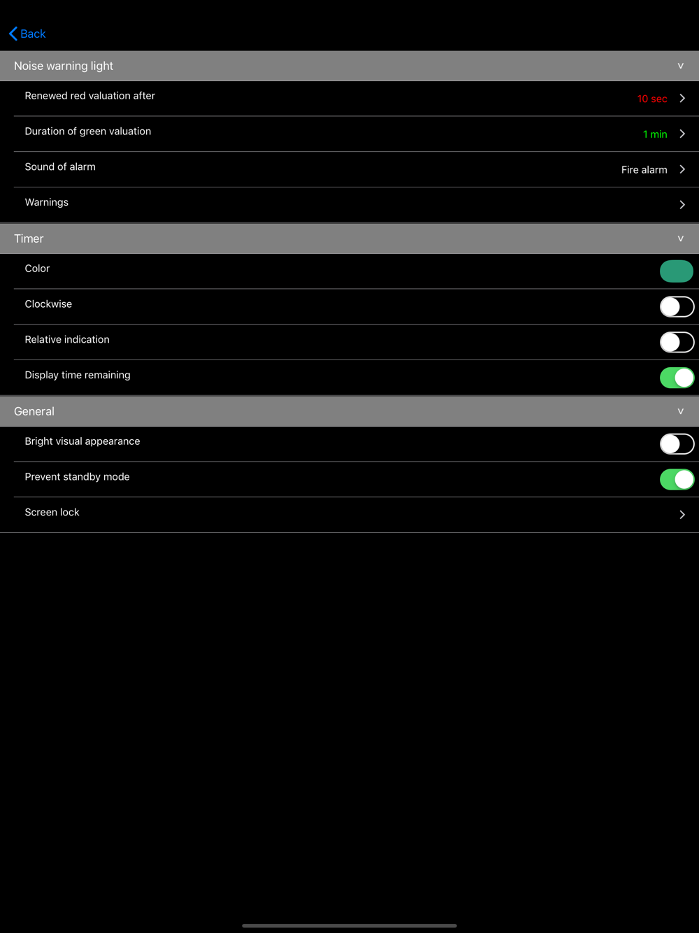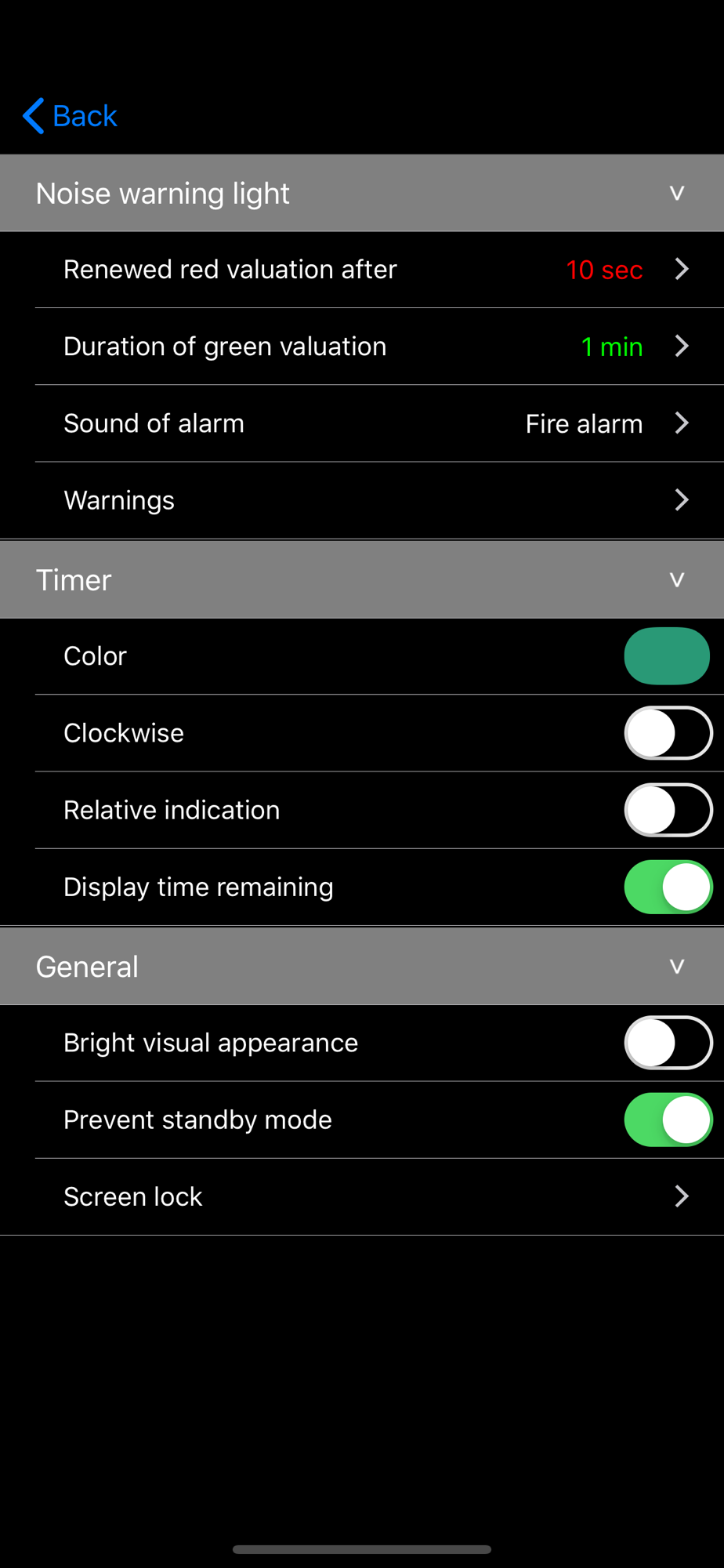 In the noise traffic light, the time that has already elapsed can be deactivated or completely hidden.