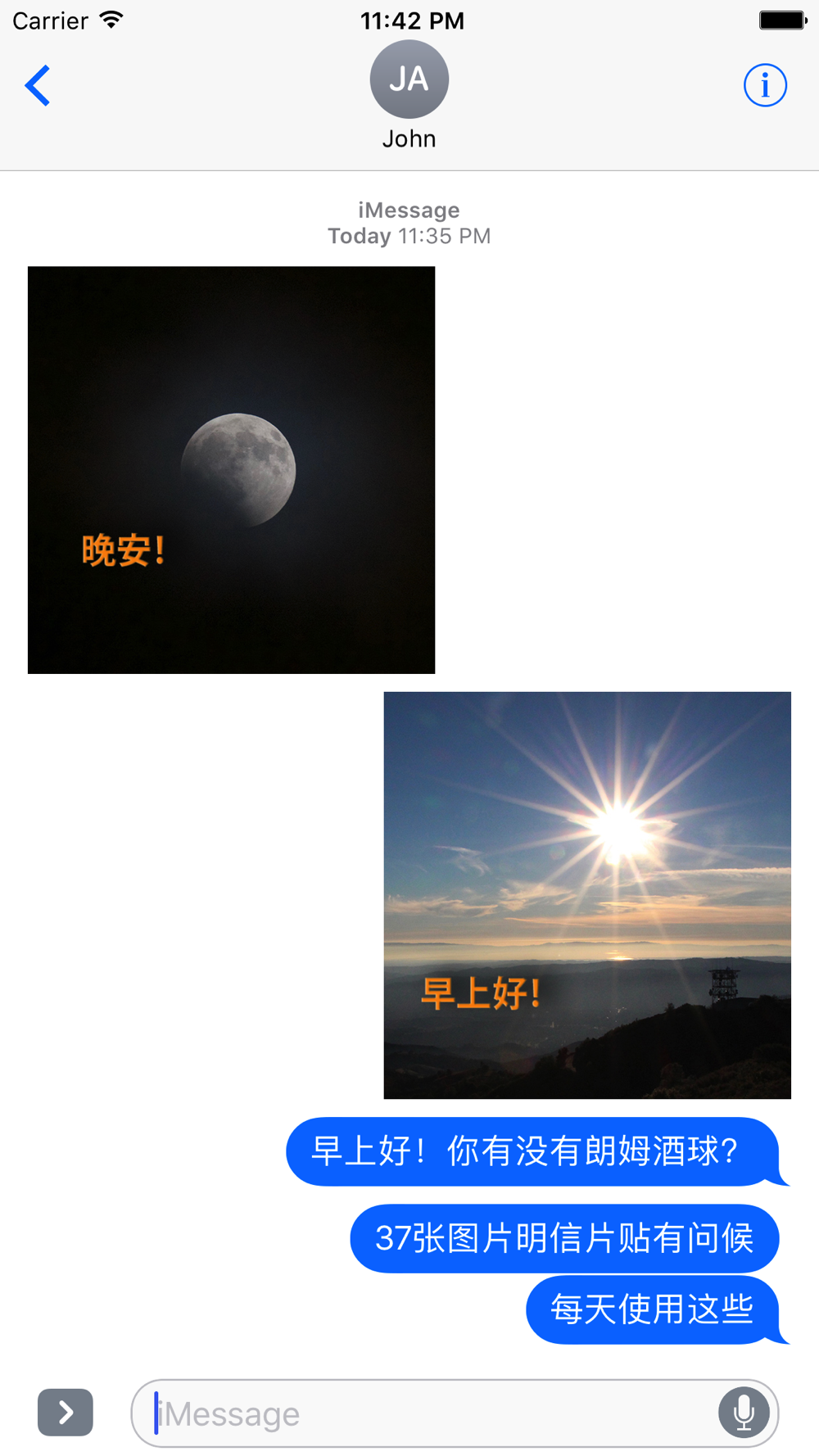 与朋友一起开始或结束一天消息对话的完美方式! 定制您的每日问候。